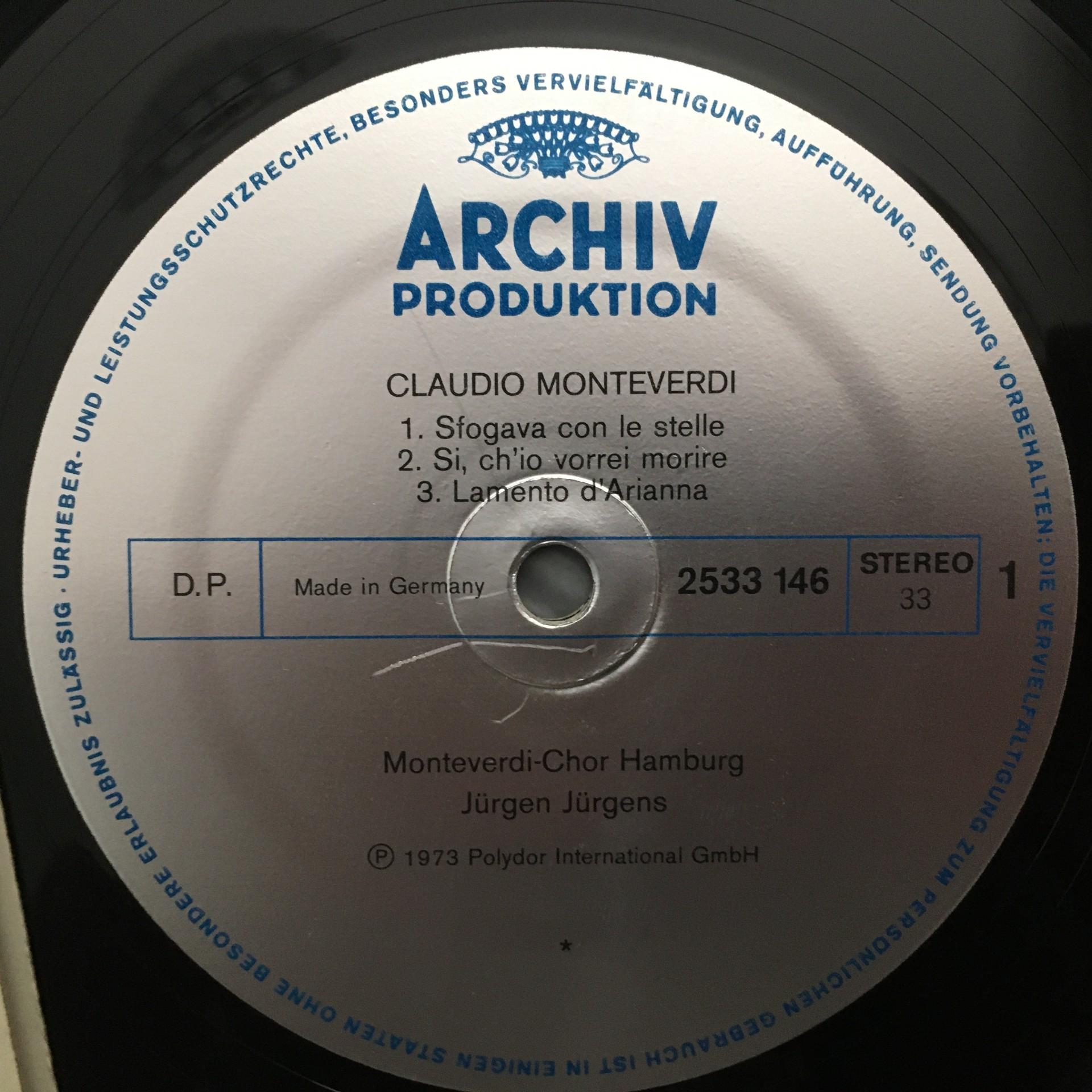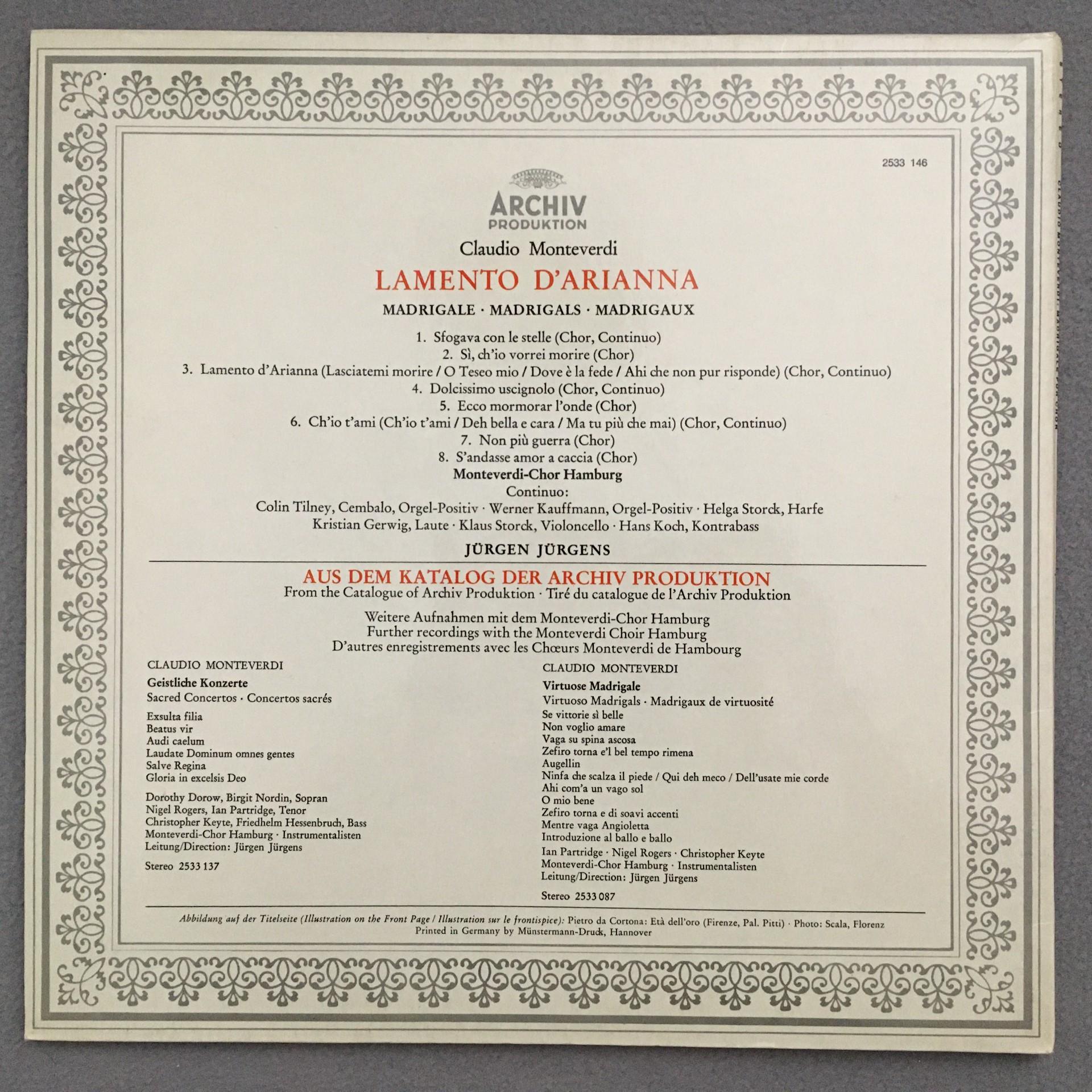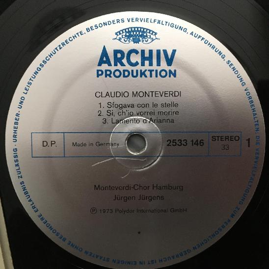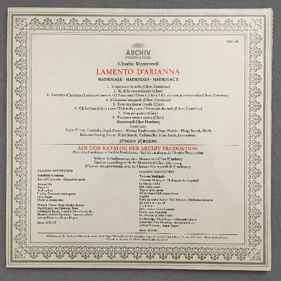 L192 Monteverdi Madrigals Lamento d´Arianna Jürgens DGG Archiv 2533 146 Stereo