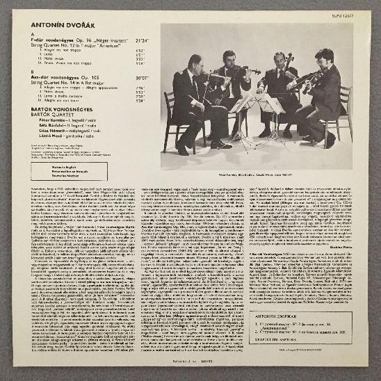 P316 Dvorak String Quartets Bartok Quartet Hungaroton SLPD 12577 Stereo
