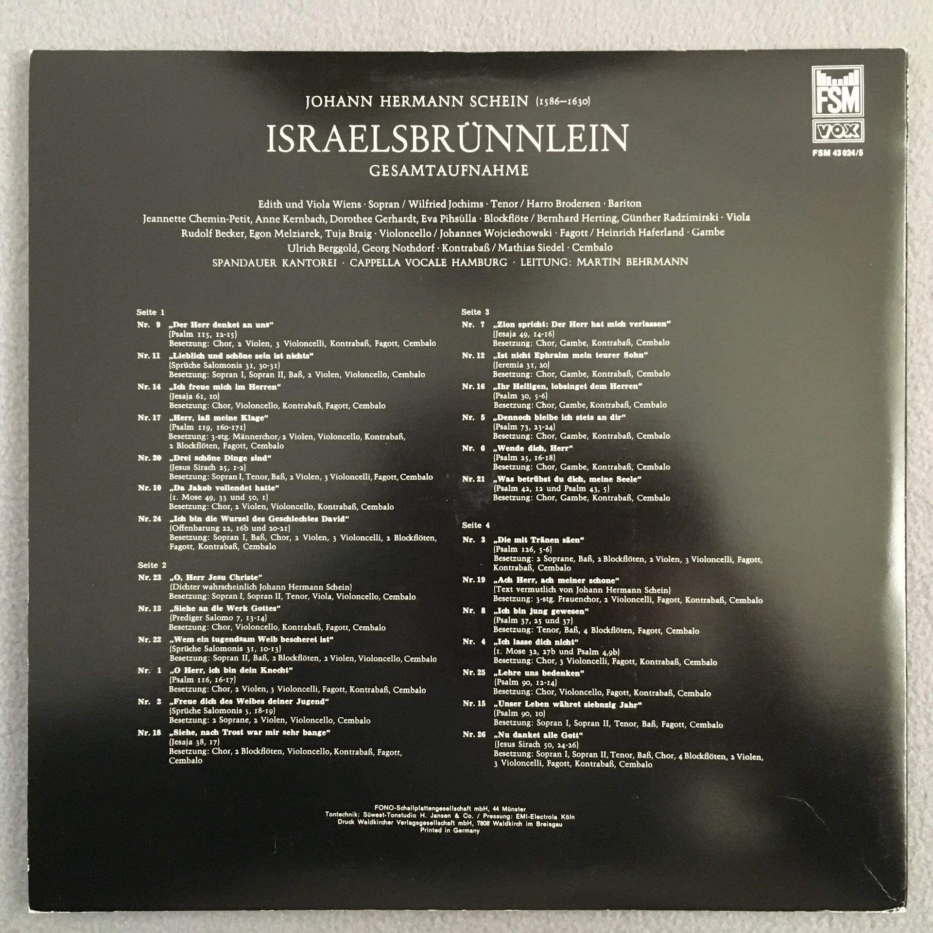 P318 Schein Israelsbrünnlein Wiens Jochims Behrmann 2LP FSM 43 024/5 Stereo
