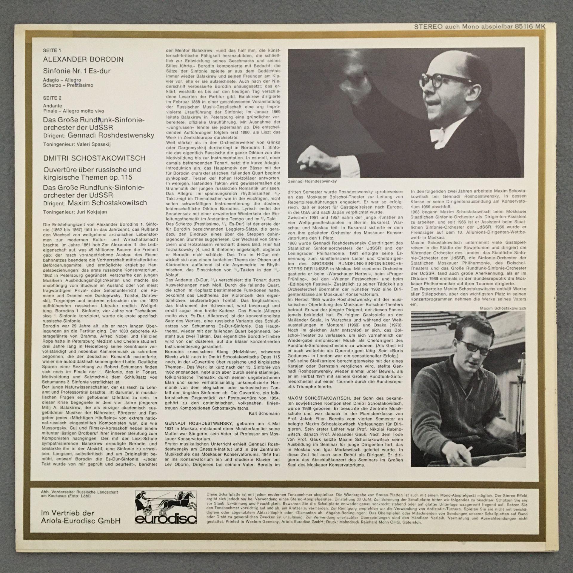 L198 Borodin Symphony No.1 Shostakovitch Eurodisc 85 116 MK Stereo