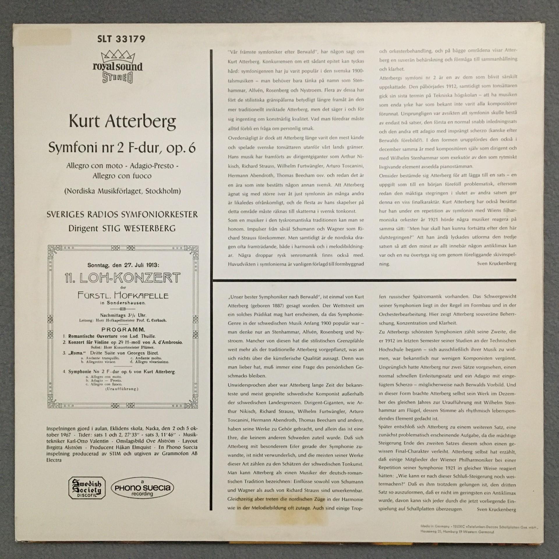 L203 Atterberg Symphony No.2 Westerberg Swedish Society SLT 33 179 Stereo