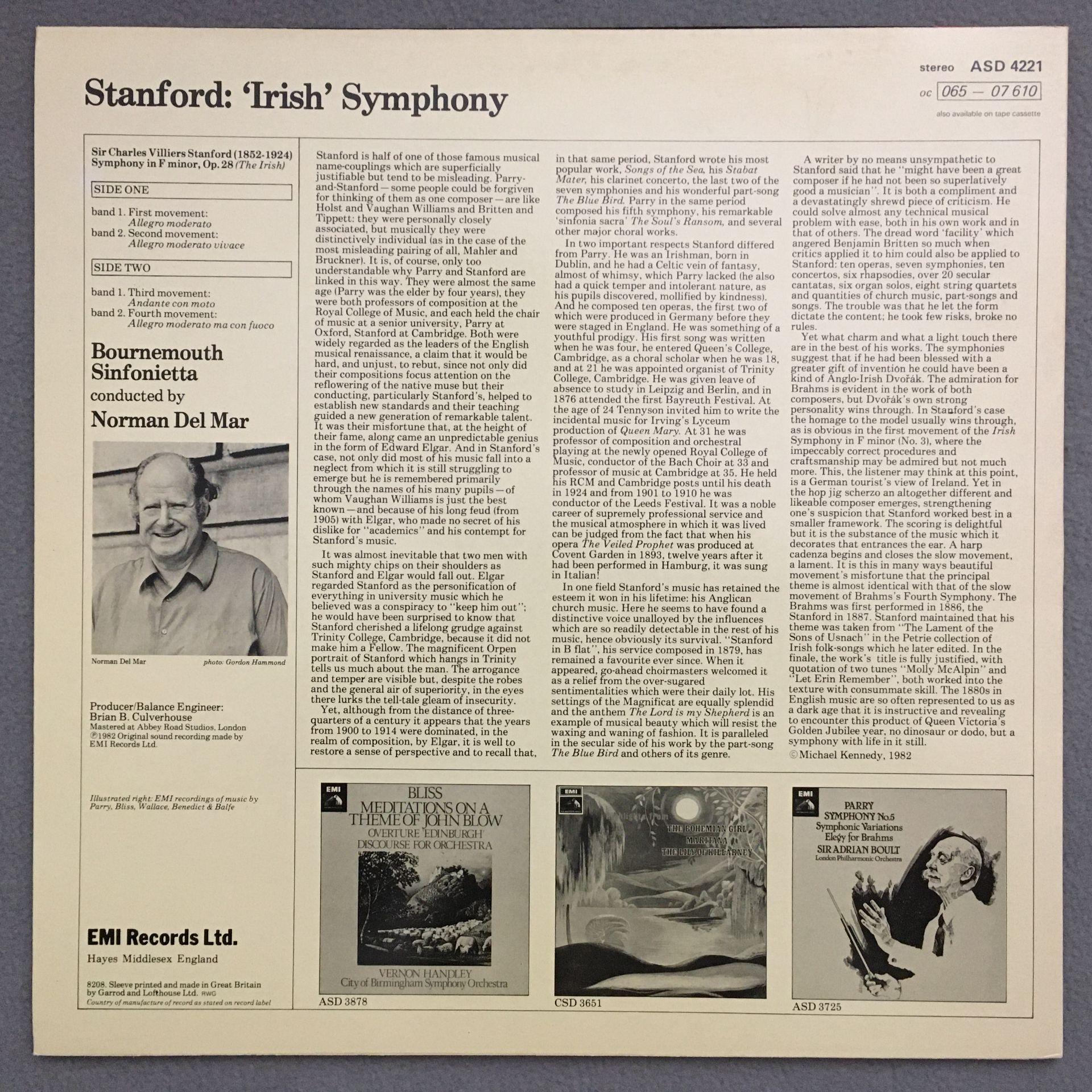L204 Stanford Irish Symphony Del Mar EMI ASD 4221 Stereo