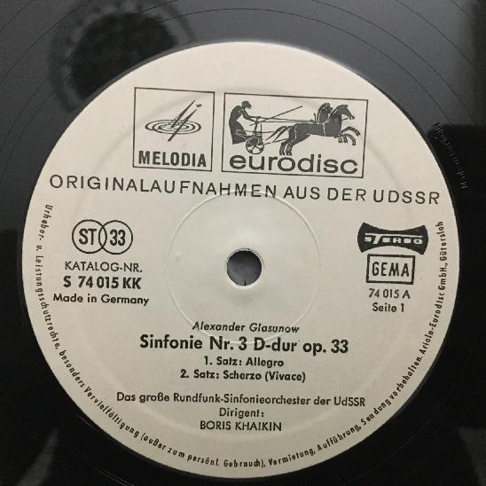 L207 Glasunow Symphony No.3 Khaikin Eurodisc S 71 015 KK Stereo