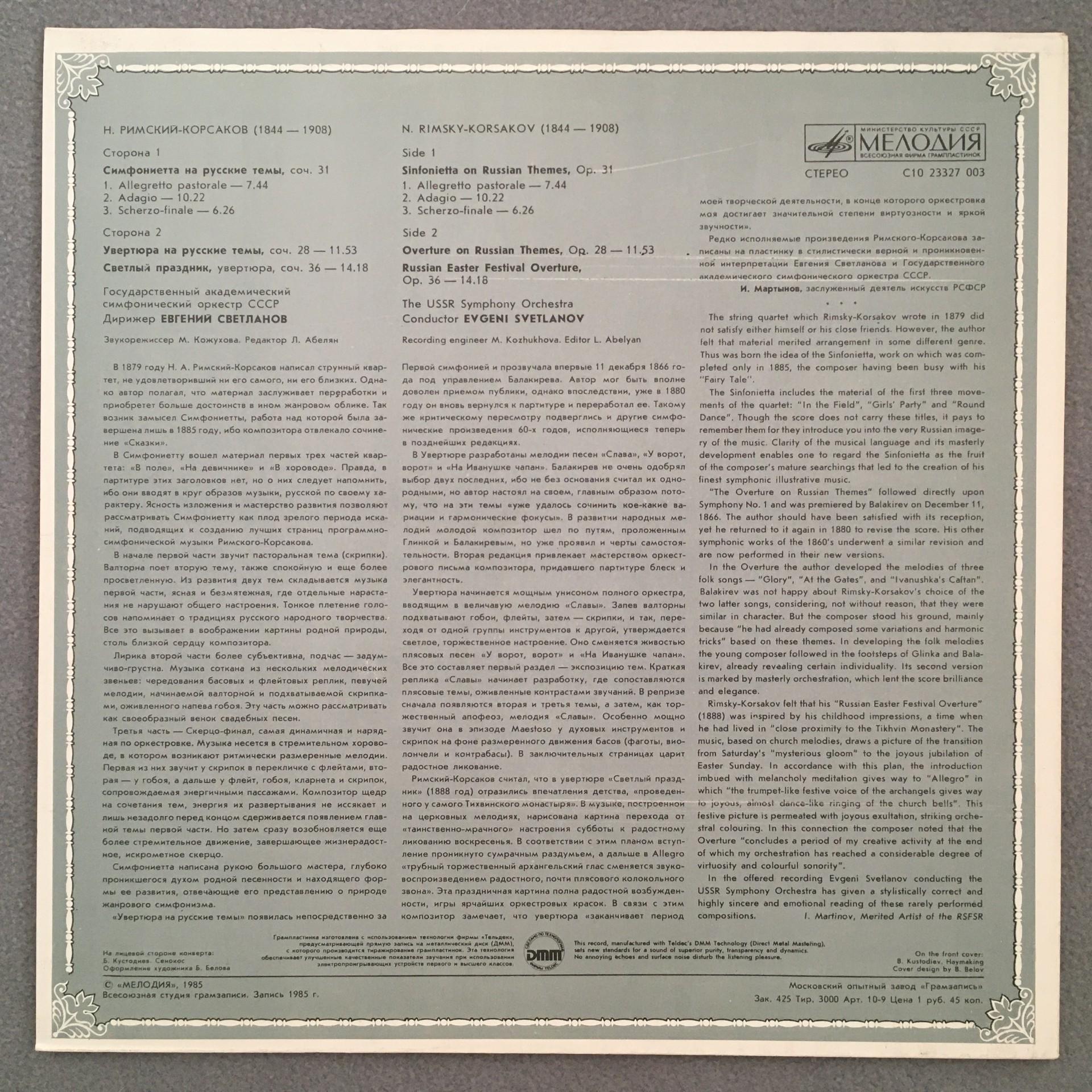 L217 Rimsky-Korsakov Sinfonietta Svetlanov Melodiya C10 23327 003 Stereo