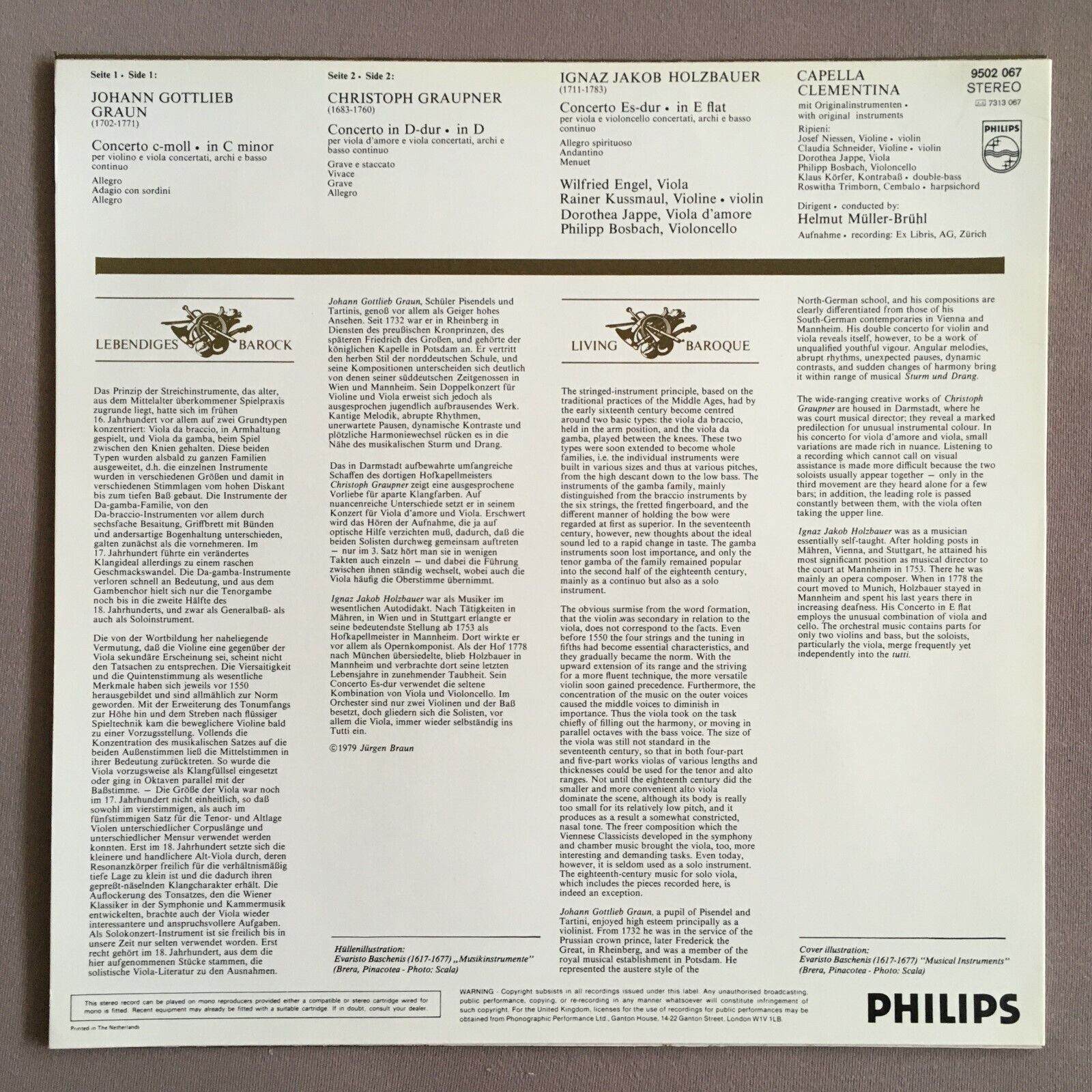 X785 Graun/Graupner Violin Concertos Engel Müller-Brühl Philips 9502 067 Stereo