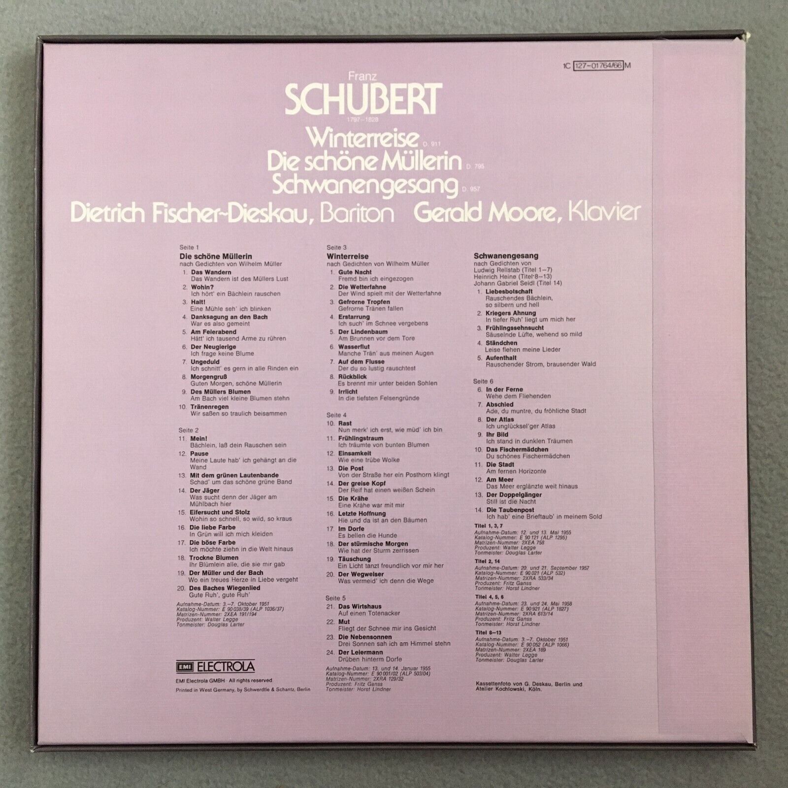 B075 Schubert Winterreise Fischer-Dieskau Moore 3LP EMI 1C 127-01 764/66 M