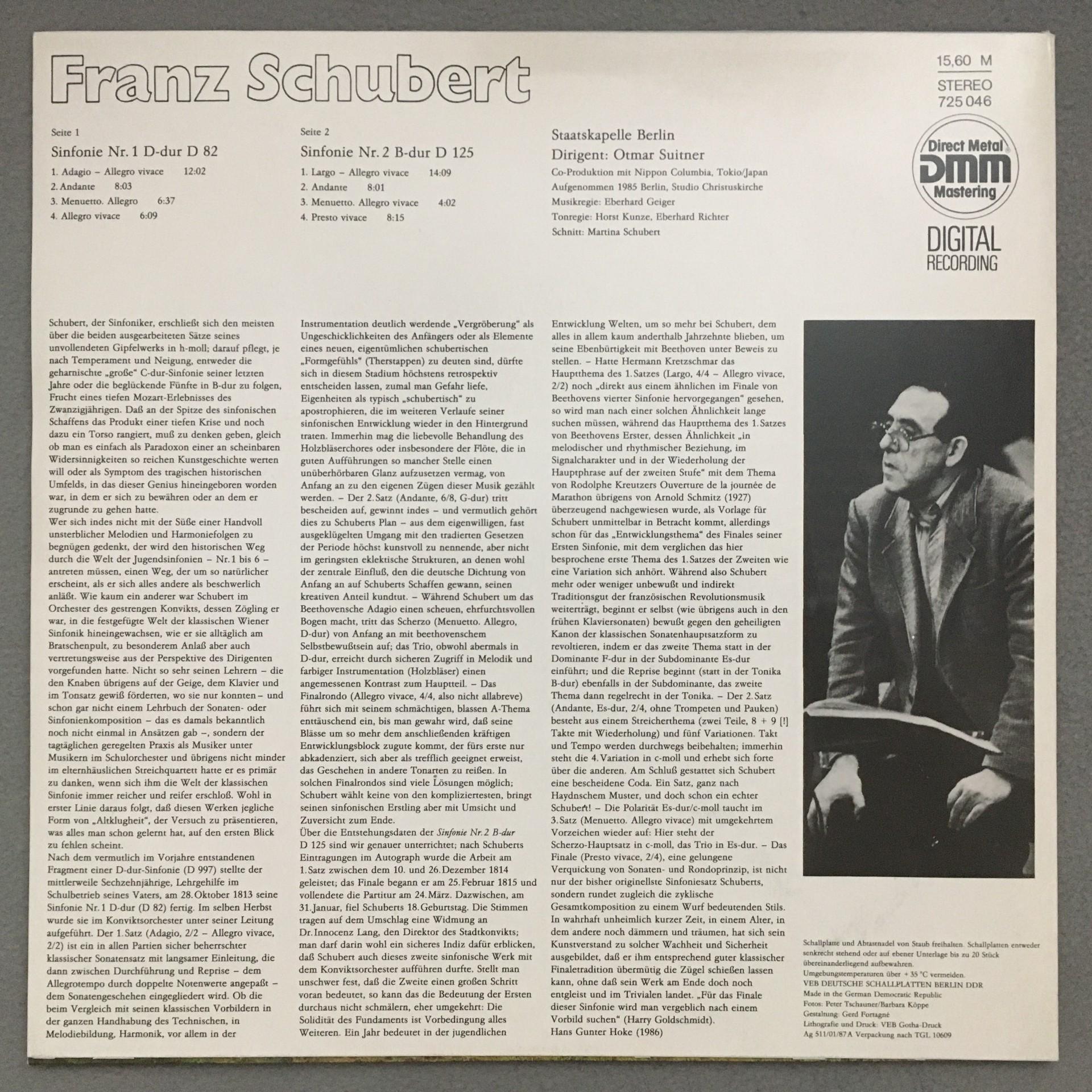 L230 Schubert Symphonies No.1 & No.2 Suitner Eterna 725 046 Digital Stereo