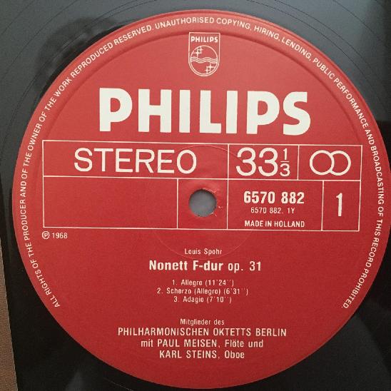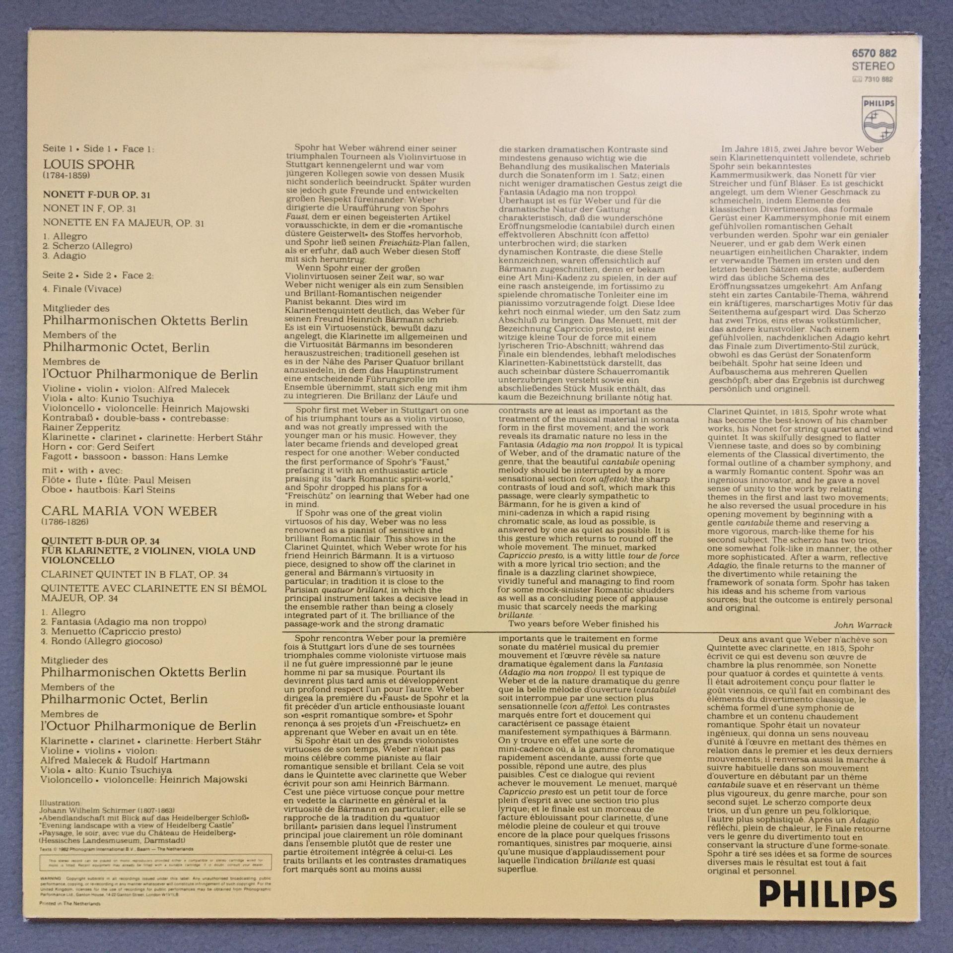 L242 Spohr Nonet Weber Clarinet Quintet Octet BPO Philips 6570 882 Stereo