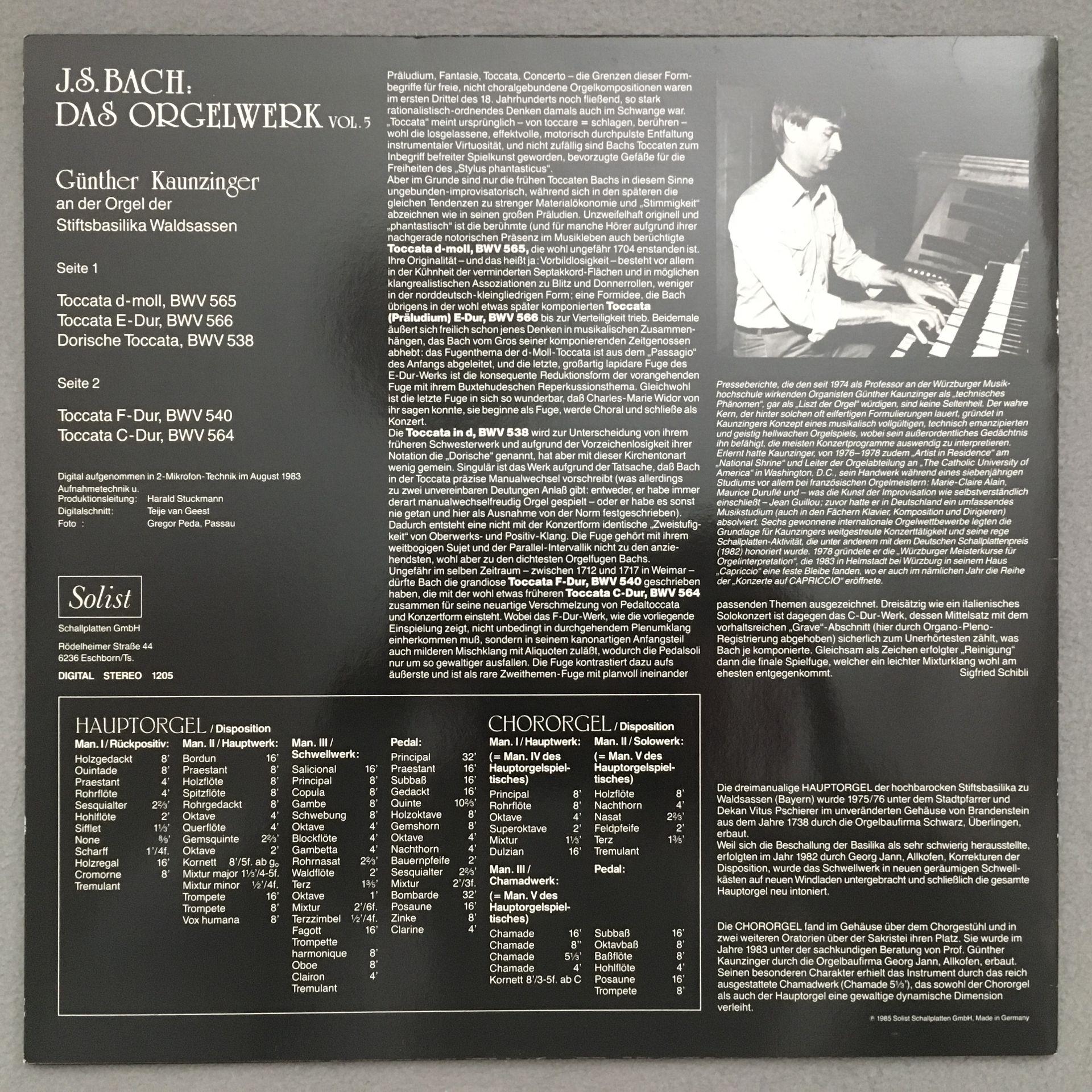 L246 Bach The Organ Work Vol.5 Alain Kaunzinger Solist 1205 Digital Stereo