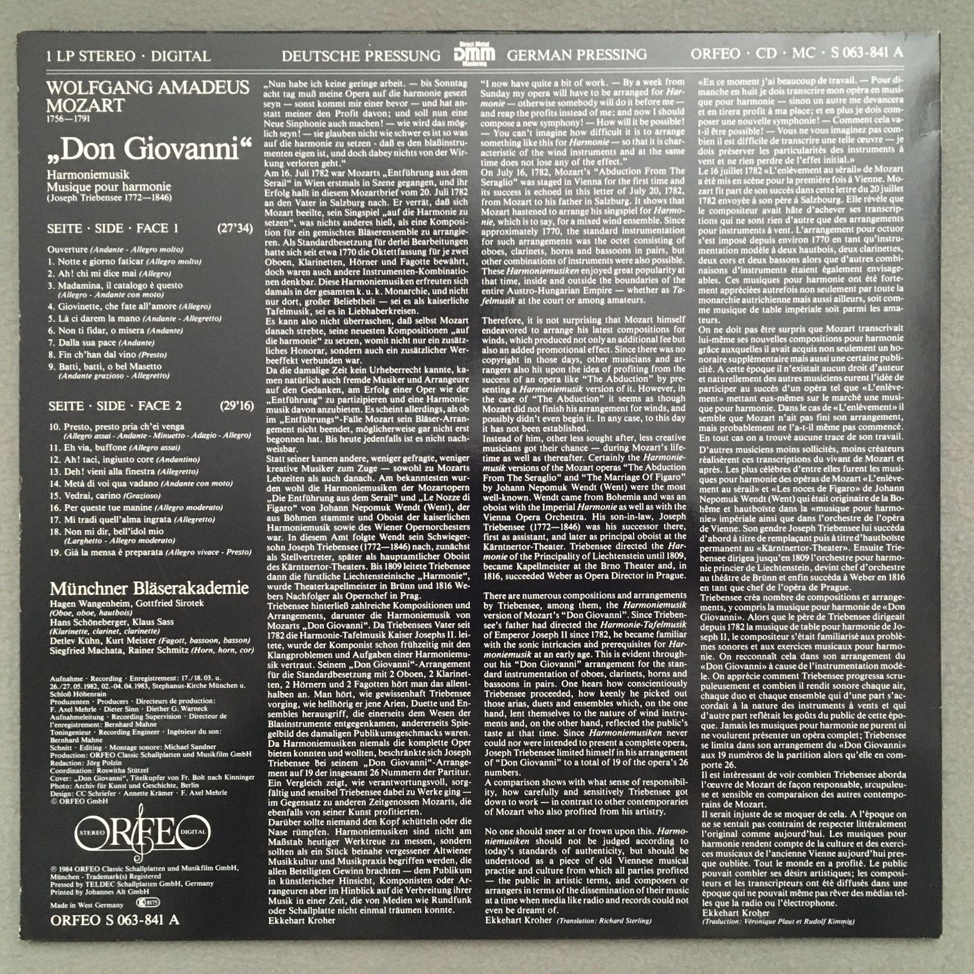 L247 Mozart Don Giovanni Munich Wind Academy Orfeo S 063-841 A Digital Stereo