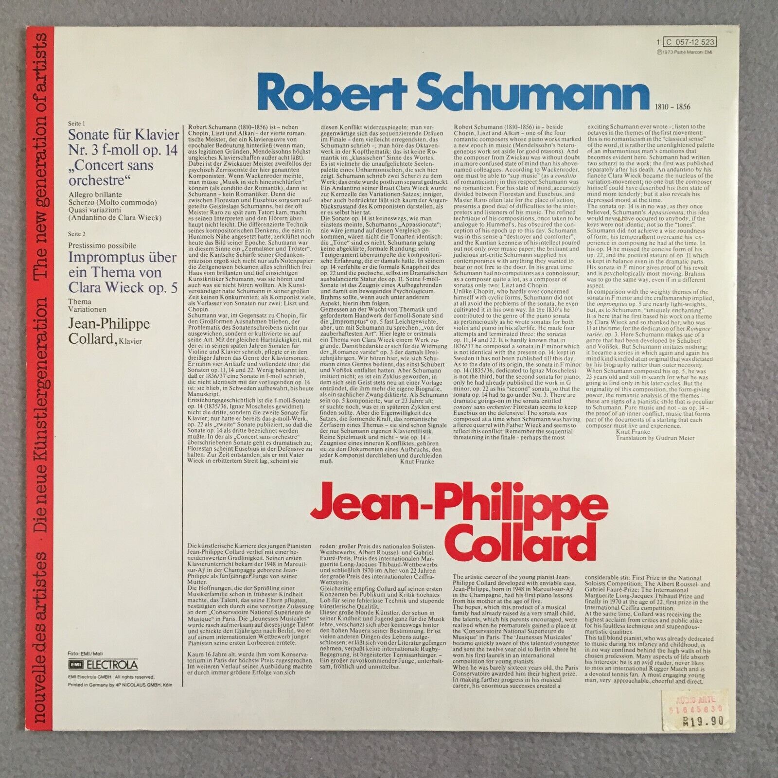 X886 Schubert Piano Sonata Impromptus Collard EMI 1 C 057-12 523 Stereo