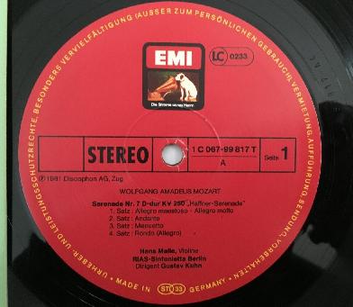 P333 Mozart Haffner Serenade No.7 Kuhn EMI 1C 067-99 817 T Digital Stereo