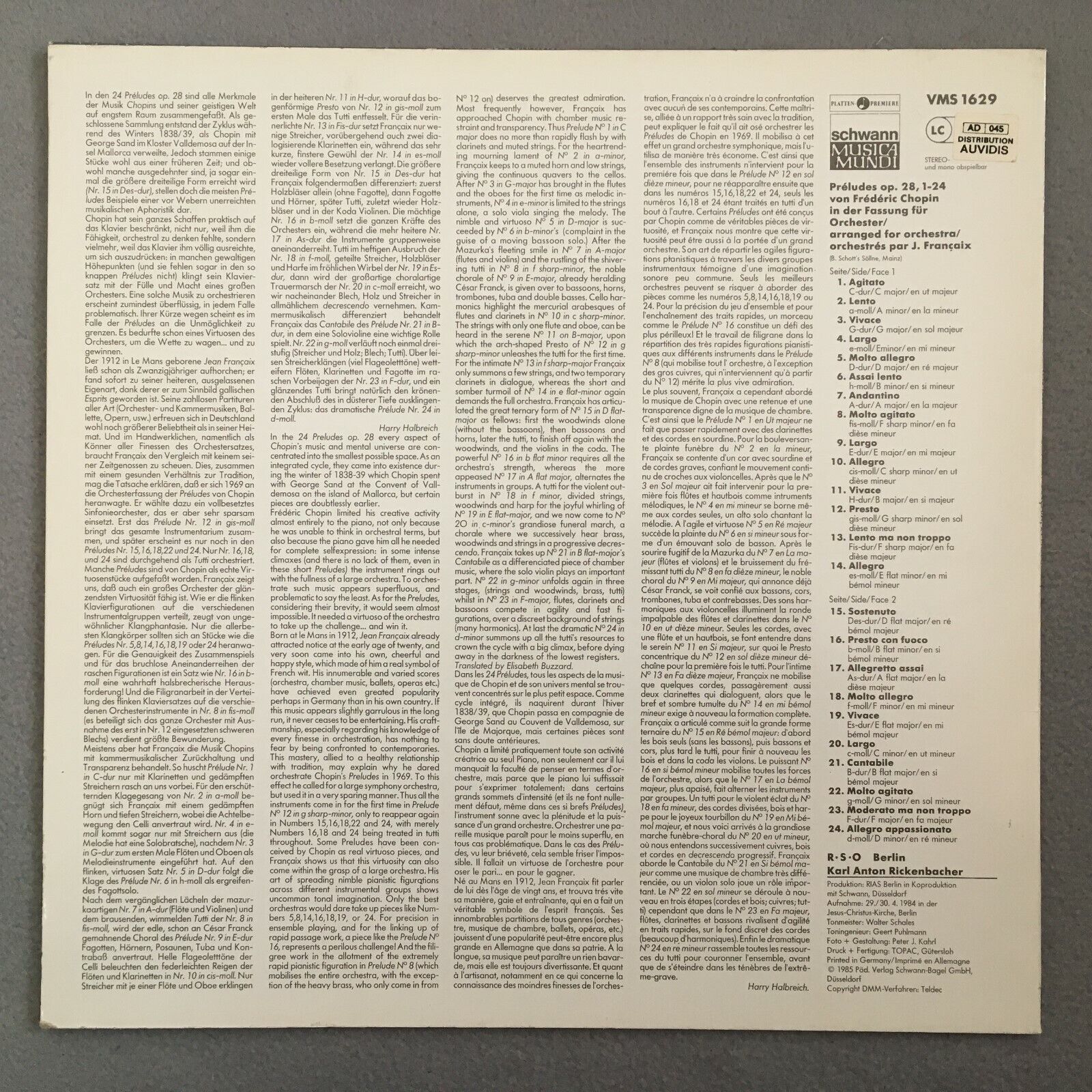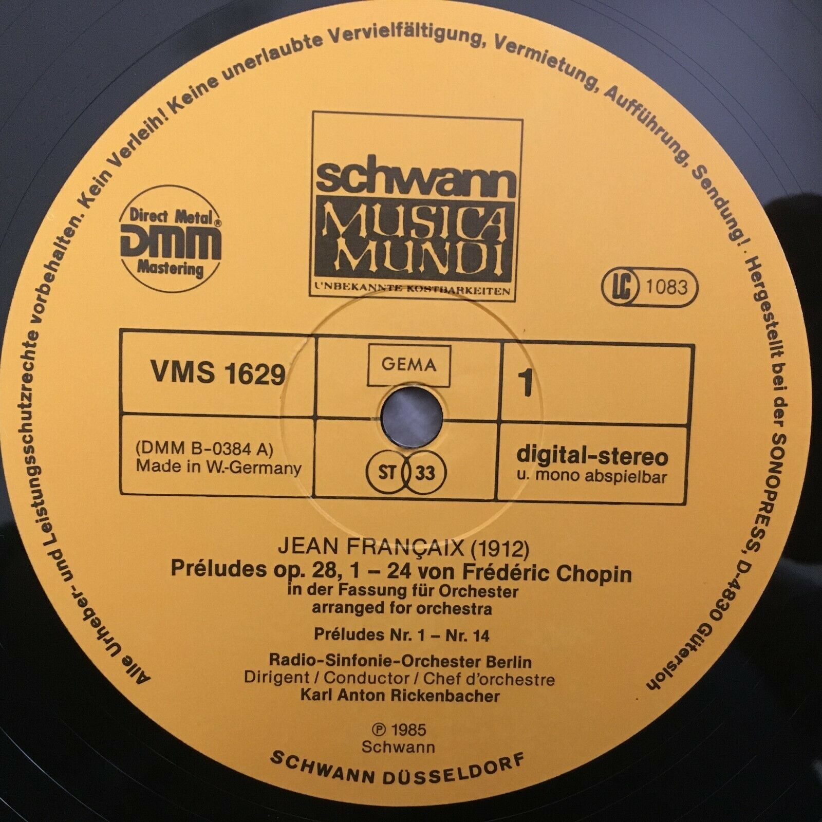 Z224 Chopin Preludes Op.28 Francaix Rickenbacher Schwann VMS 1629 Digital Stereo