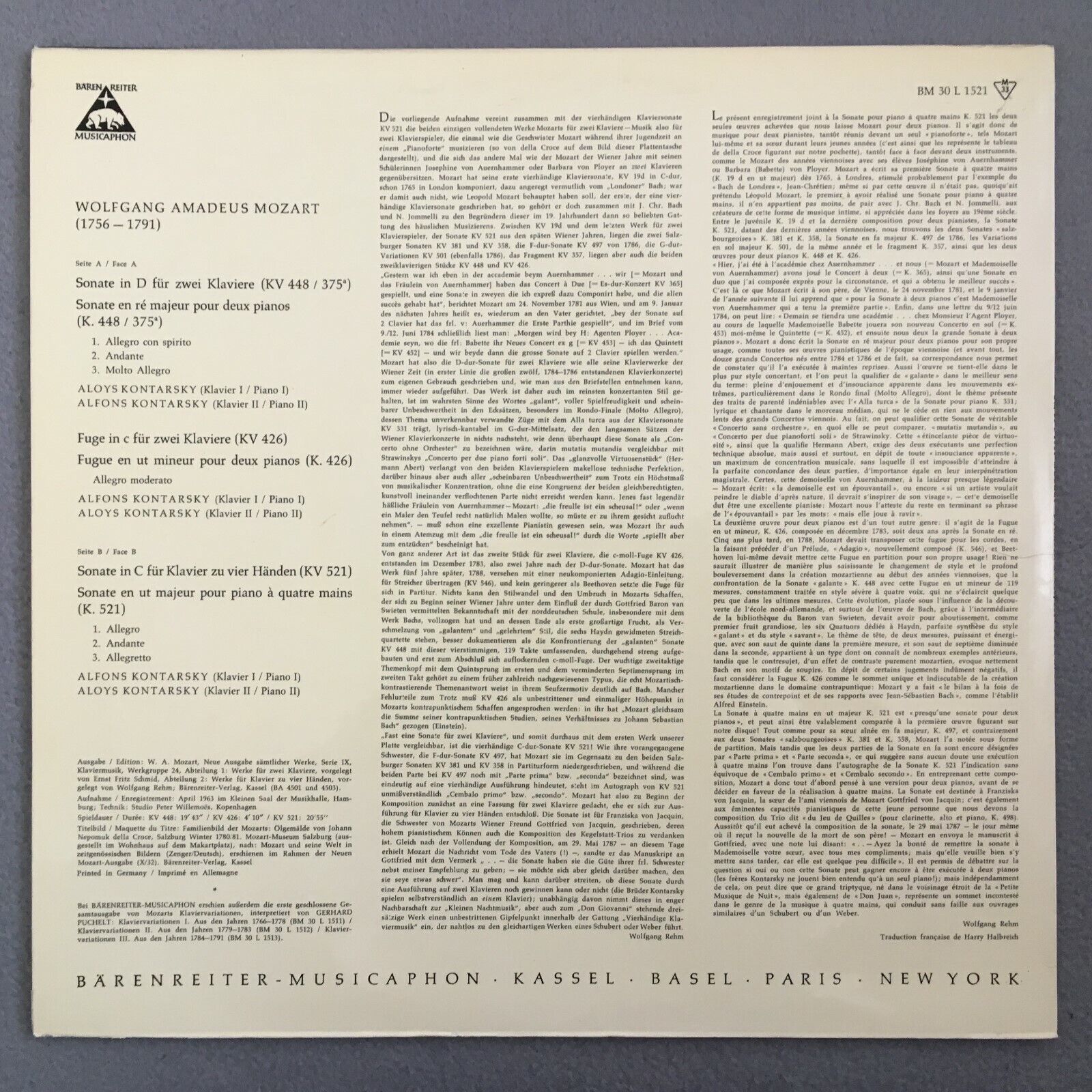 Z228 Mozart Piano Sonatas Fugue A. & A. Kontarsky BM BM 30 L 1521 Stereo