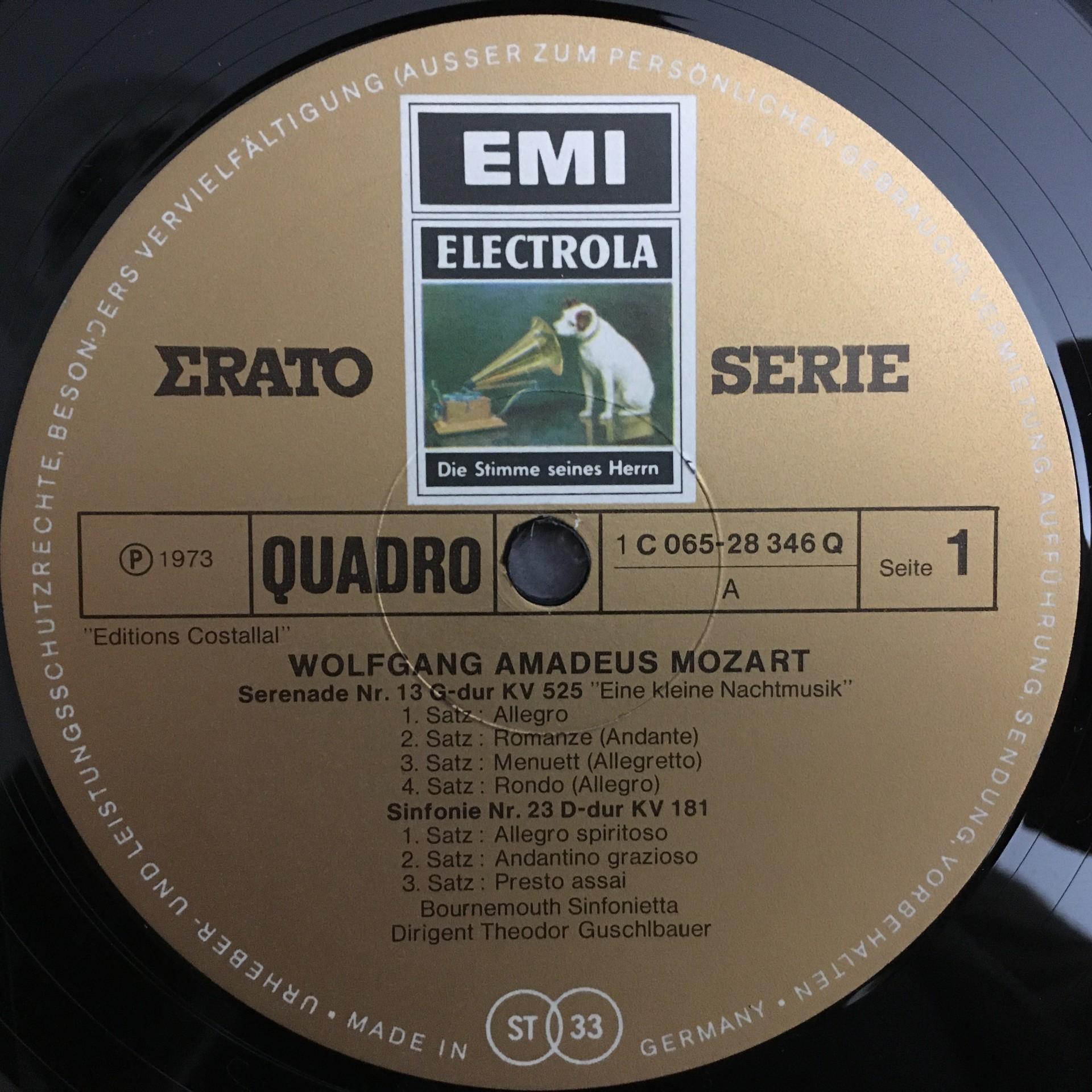 L275 Mozart Symphonies No.23 & 29 Guschlbauer EMI 1C 065-28 346 Q Quadro