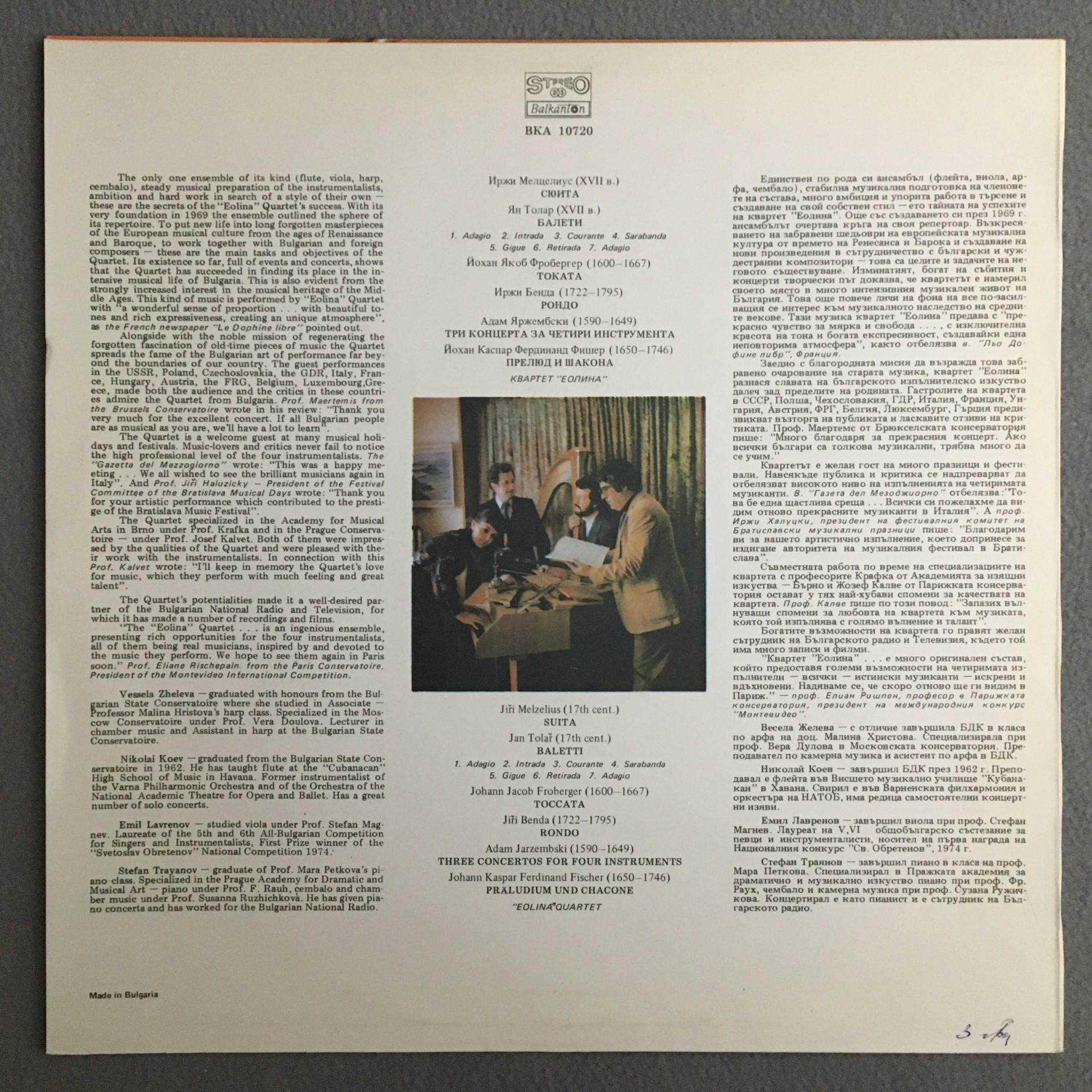 L279 Froberger Toccata Benda Rondo Eolina Quartet Balkanton BKA 10720 Stereo