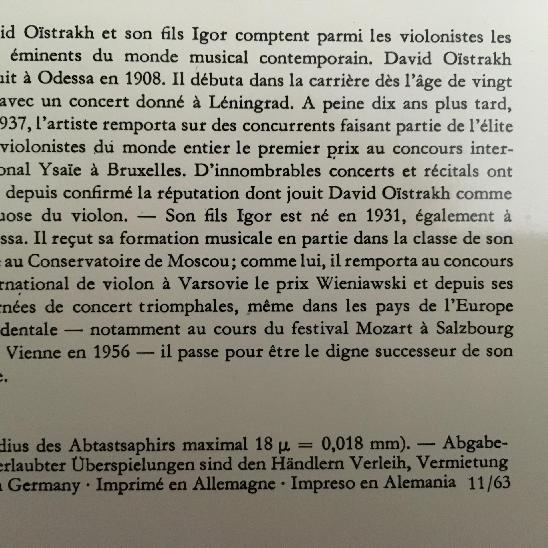 L280 Bach Violin Concertos I. & D. Oistrakh Gossens DGG 138 820 SLPM Red Stereo