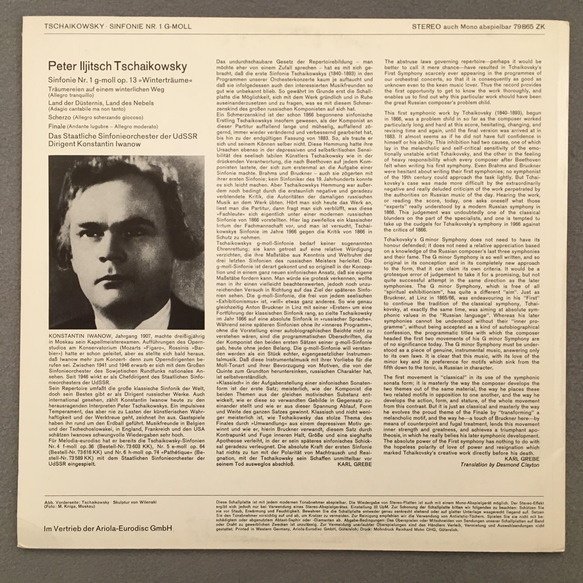 L287 Tchaikovsky Symphony No.1 Iwanow Melodiya 79 865 ZK Stereo