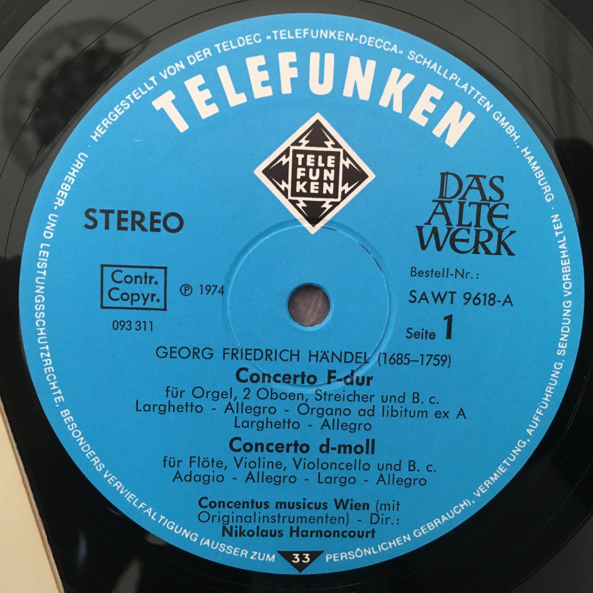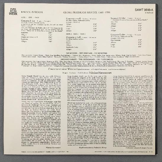 L298 Handel Concertos Sonata Harnoncourt Telefunken SAWT 9618-A Stereo