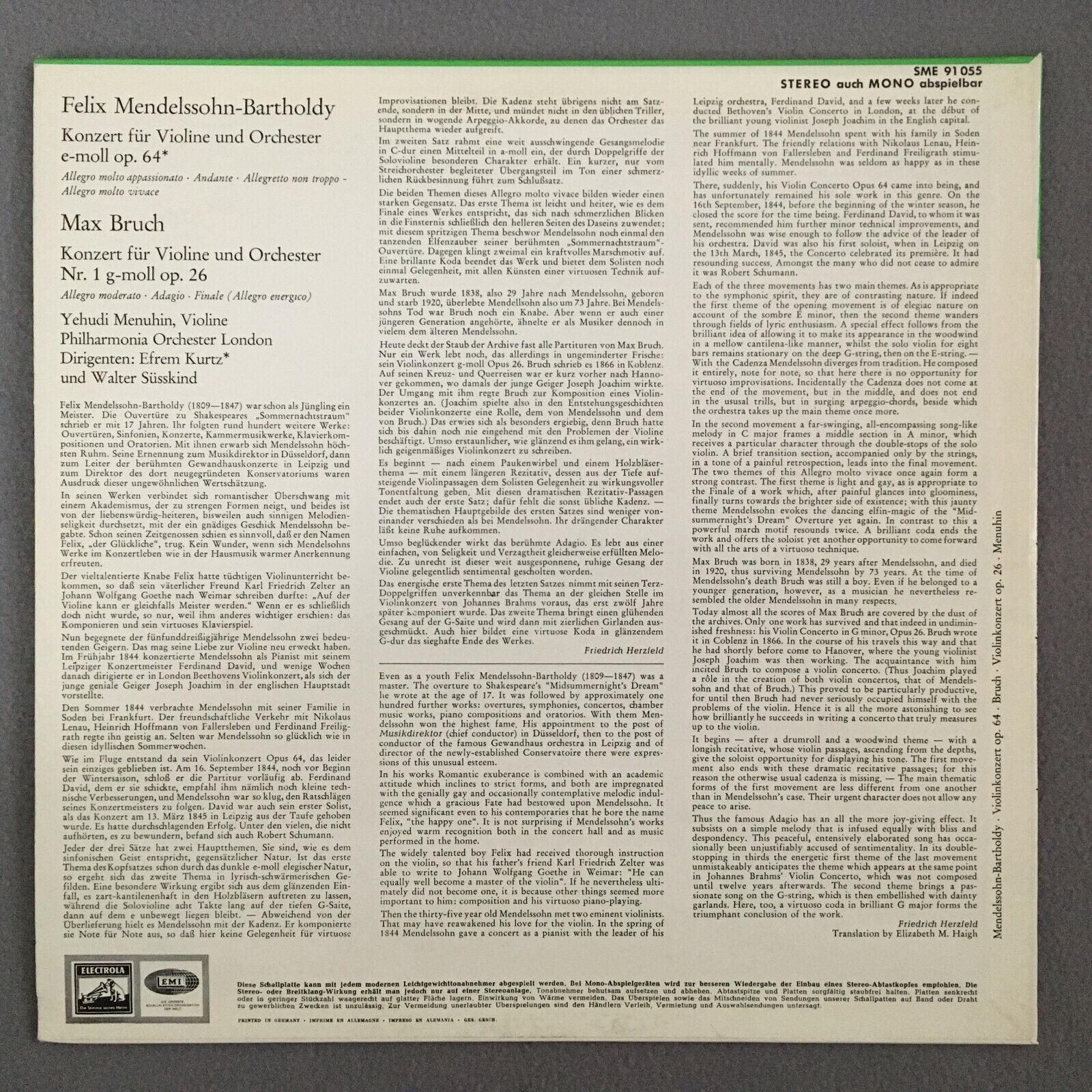 Z302 Bruch/Mendelssohn Violin Concertos Menuhin Electrola w/g SME 91 055 Stereo