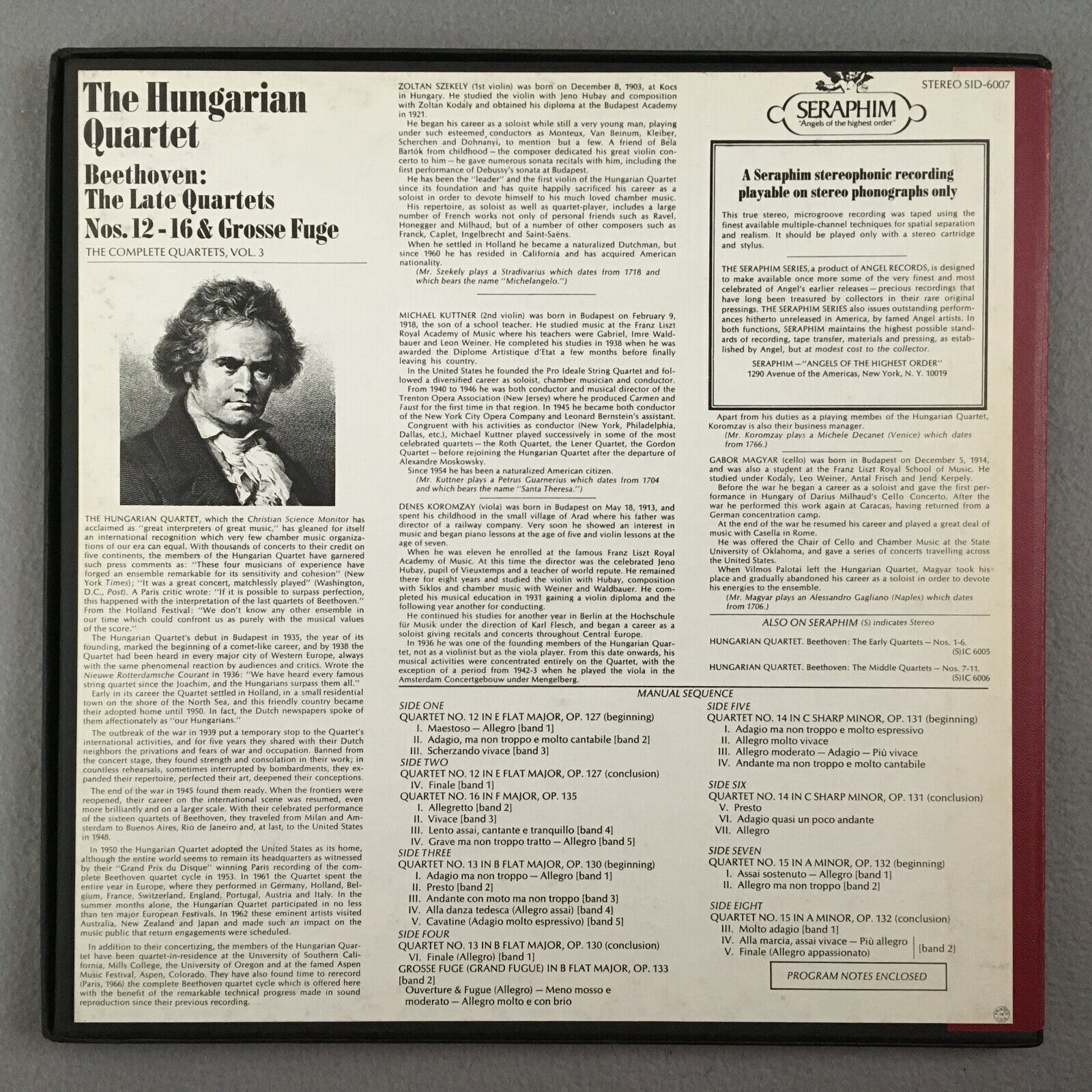 B091 Beethoven The Late Quartets Hungarian Quartet 4LP Seraphim ID-6007 Stereo