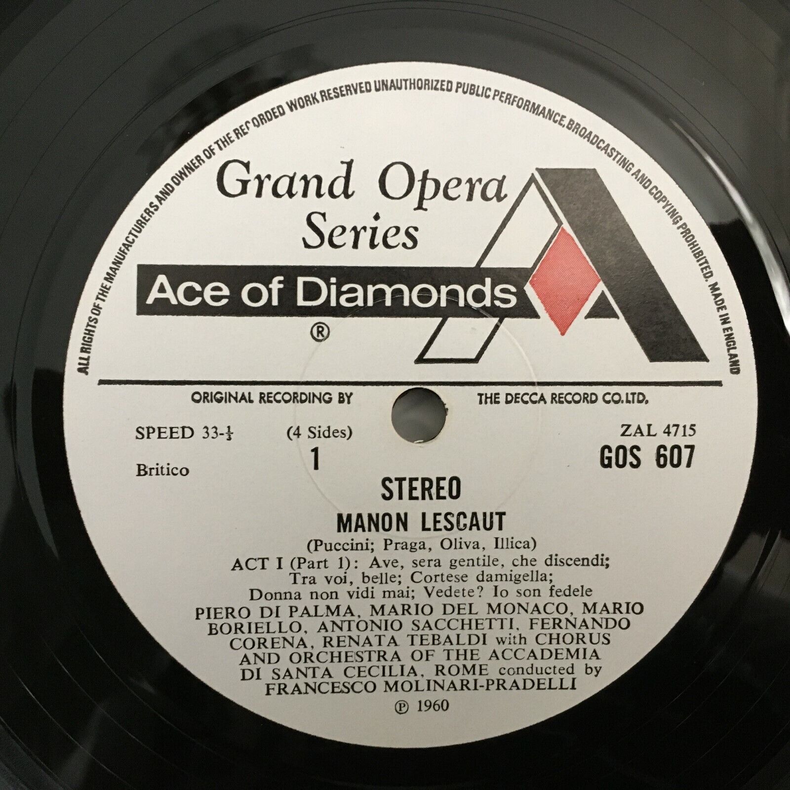 B586 Puccini Manon Lescaut Molinari-Pradelli 2LP Ace of Diamonds GOS 607-8 St