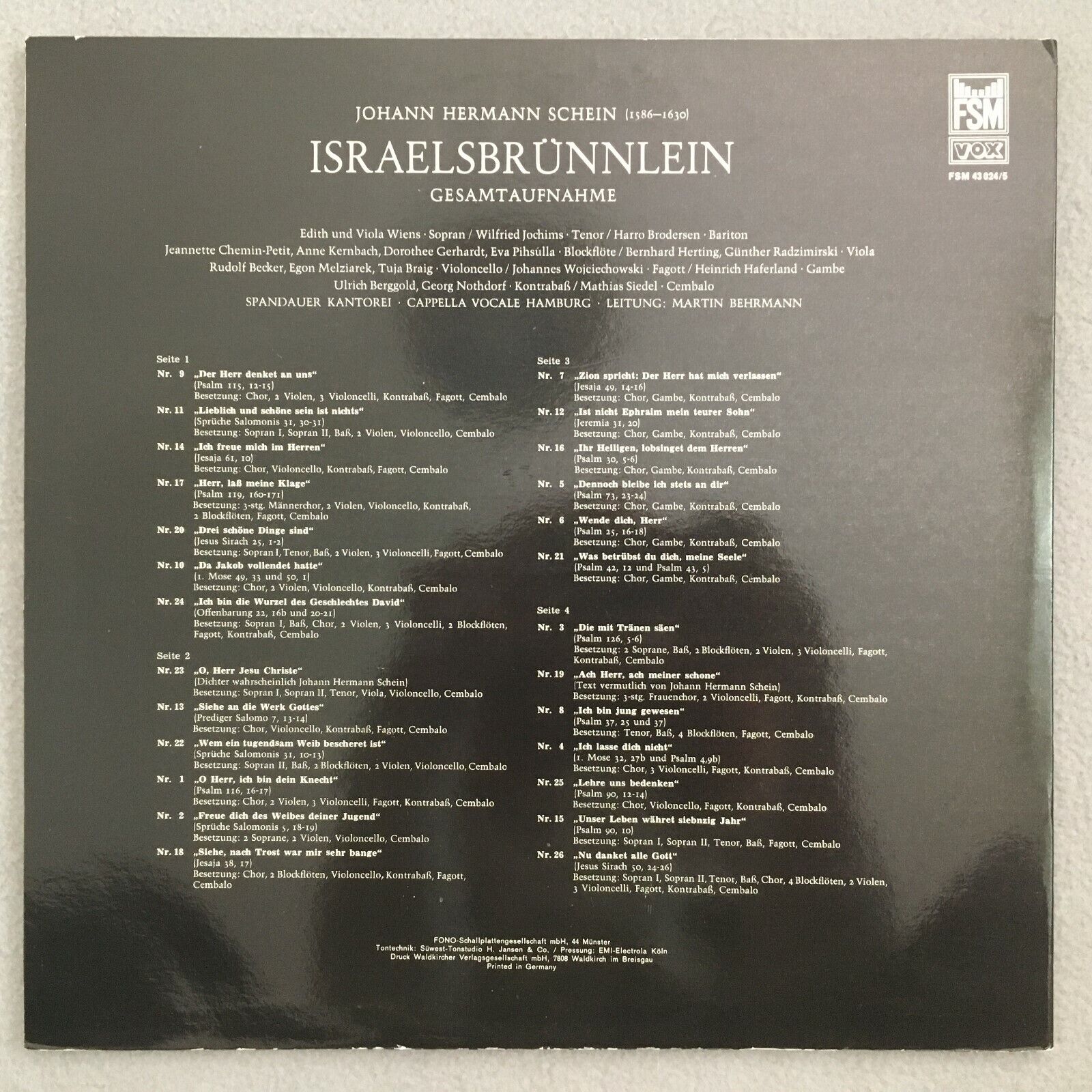 Y372 Schein Israelsbrünnlein Wiens Jochims Behrmann 2LP FSM 43 024/5 Stereo