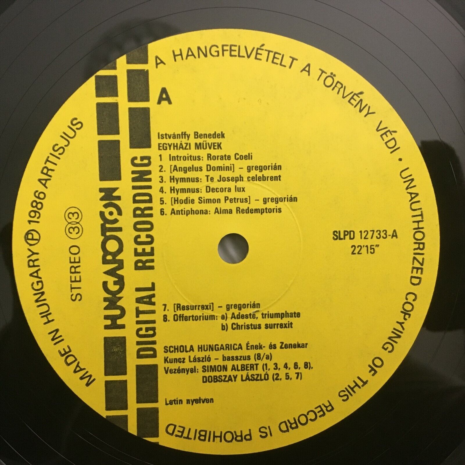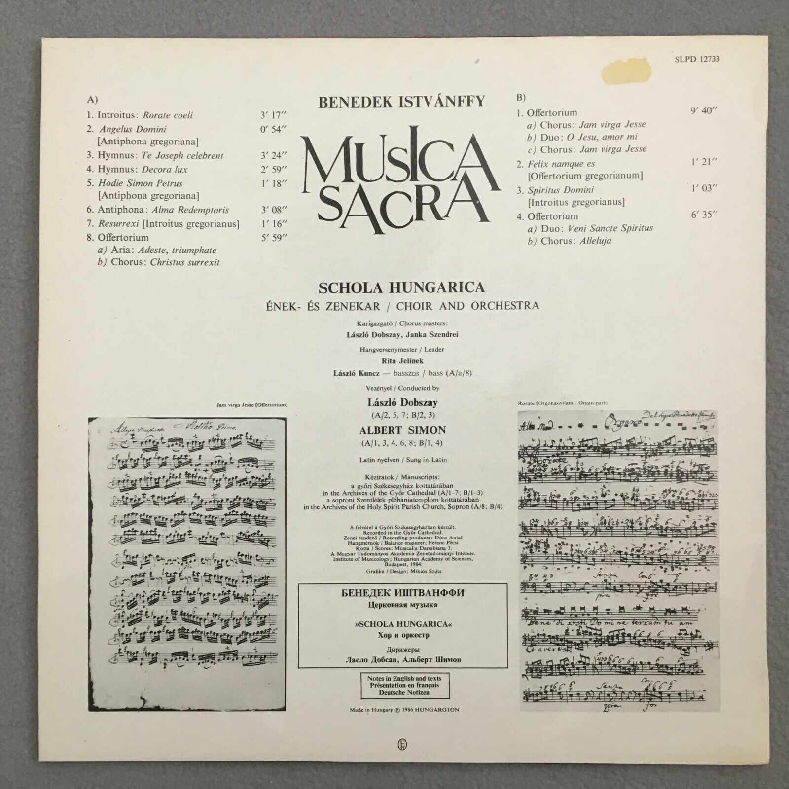 Y378 Istvanffy Musica Sacra Müvek Simon Hungaroton SLPD 12 733 Digital Stereo