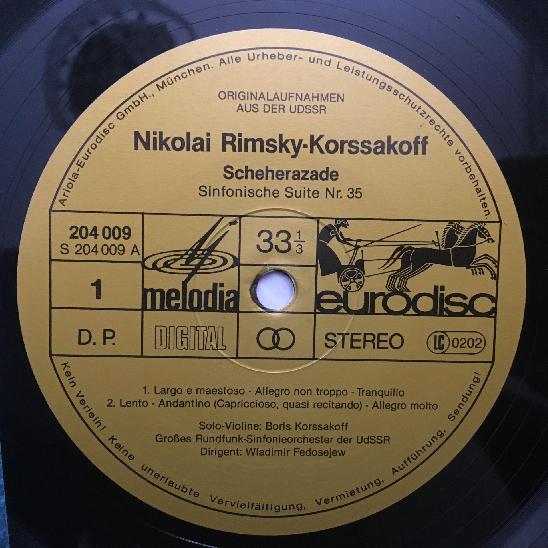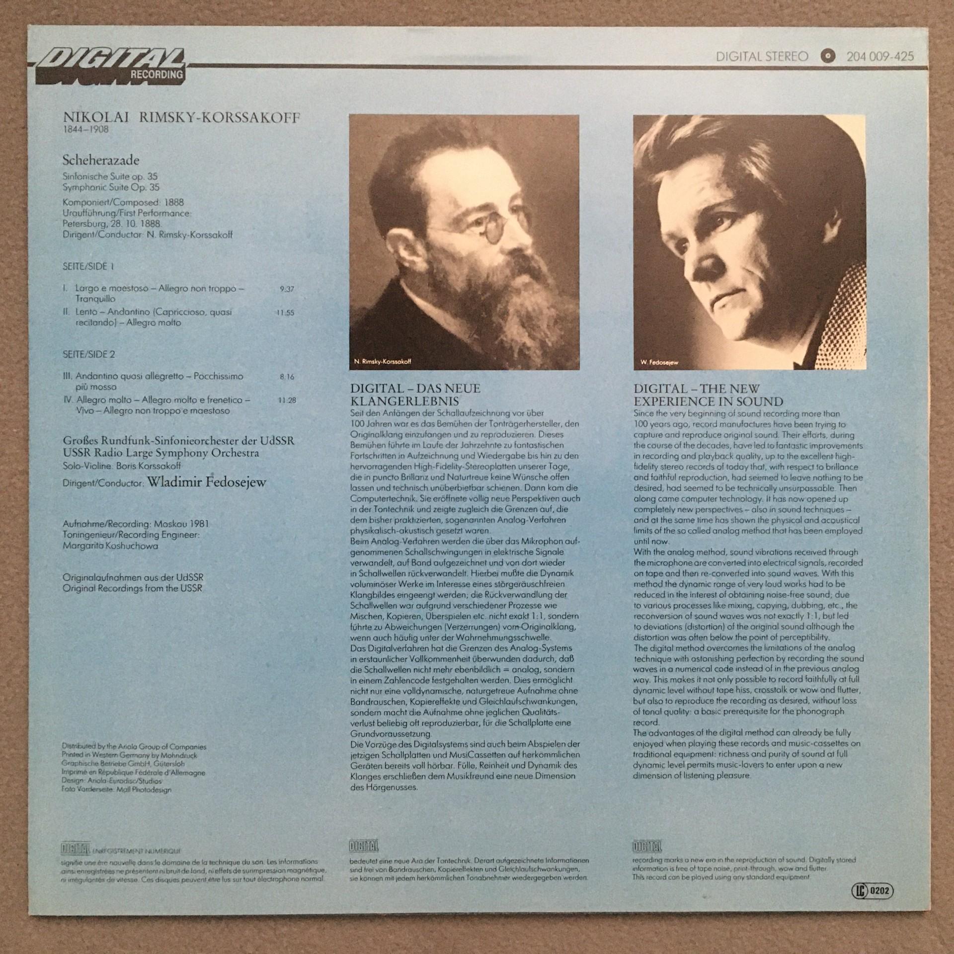 L307 Rimsky-Korssakoff Sheherazade Fedosejew Eurodisc 204 009-425 Digital Stereo