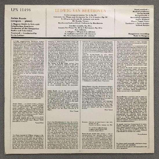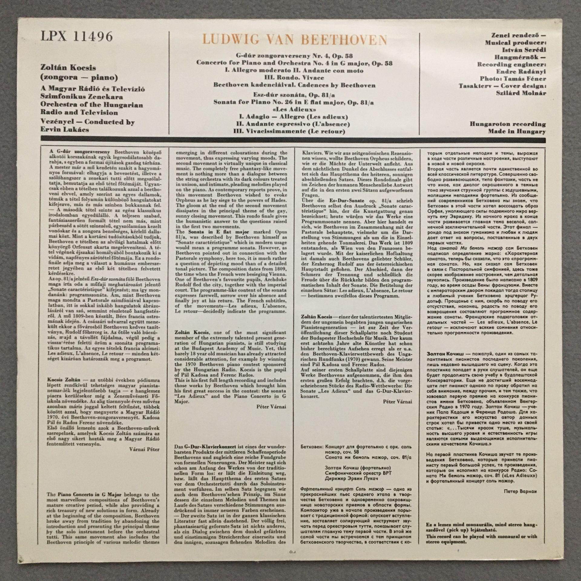 L309 Beethoven Piano Concerto Sonata Kocsis Lukacs Hungaroton LPX 11496 Stereo