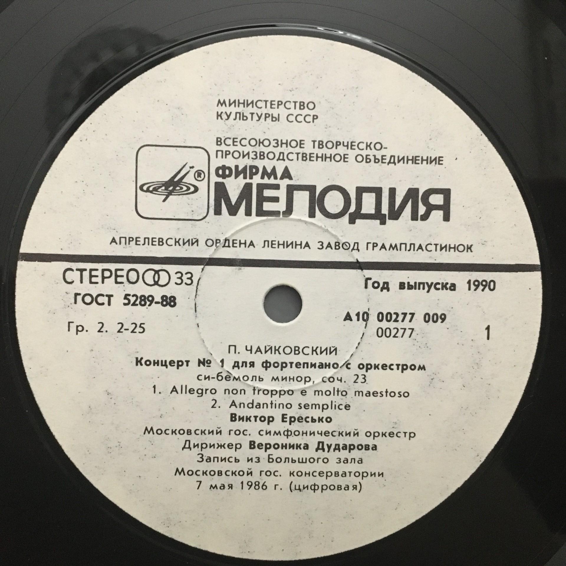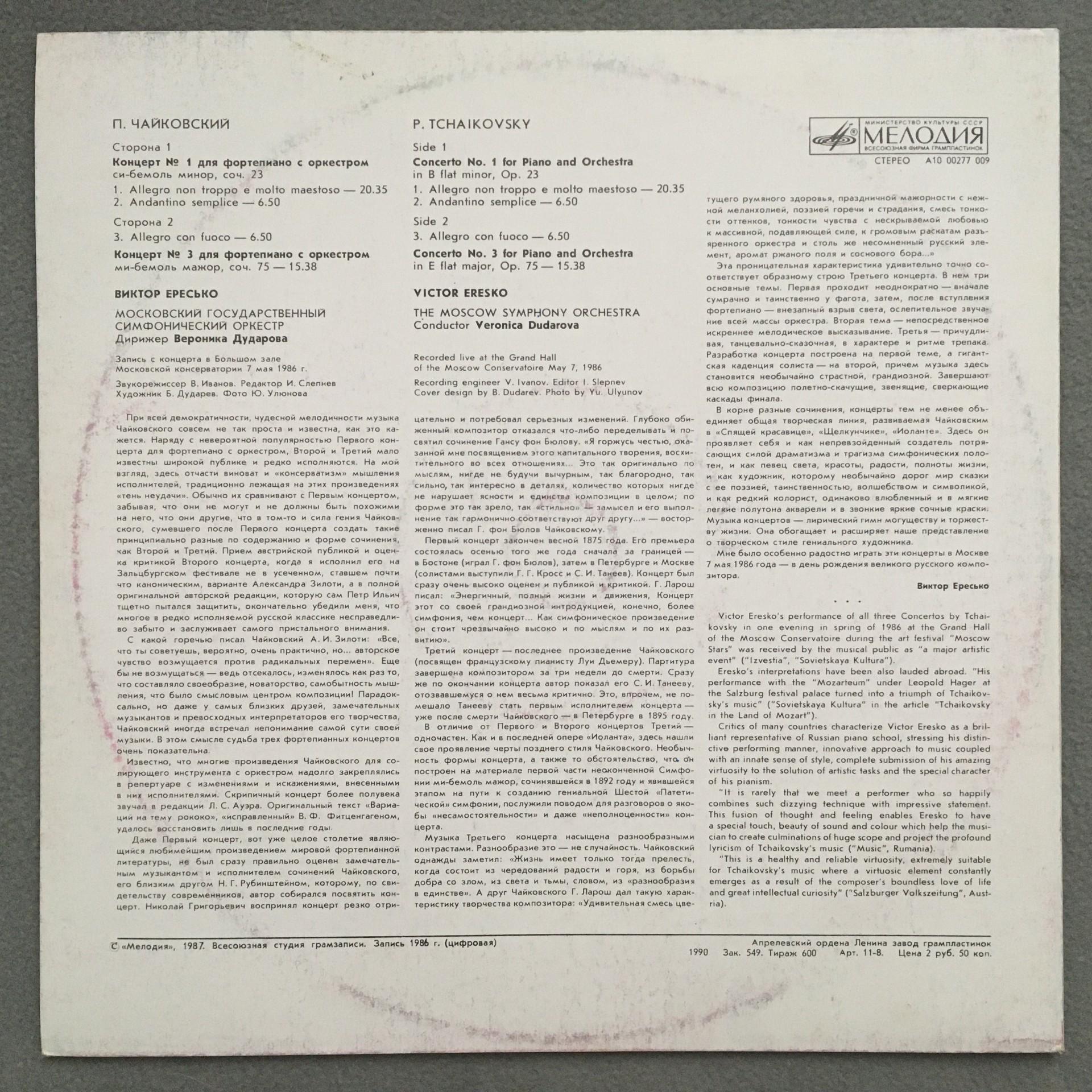 L310 Tchaikovsky Piano Concertos Eresko Dudarova Melodiya A10 00277 009 Stereo