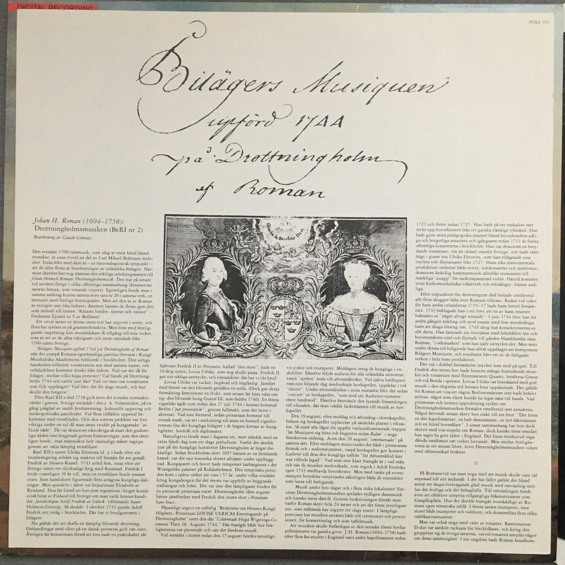 L317 The Drottningholm Music Roman Genetay Polar POLS 361 Digital Stereo
