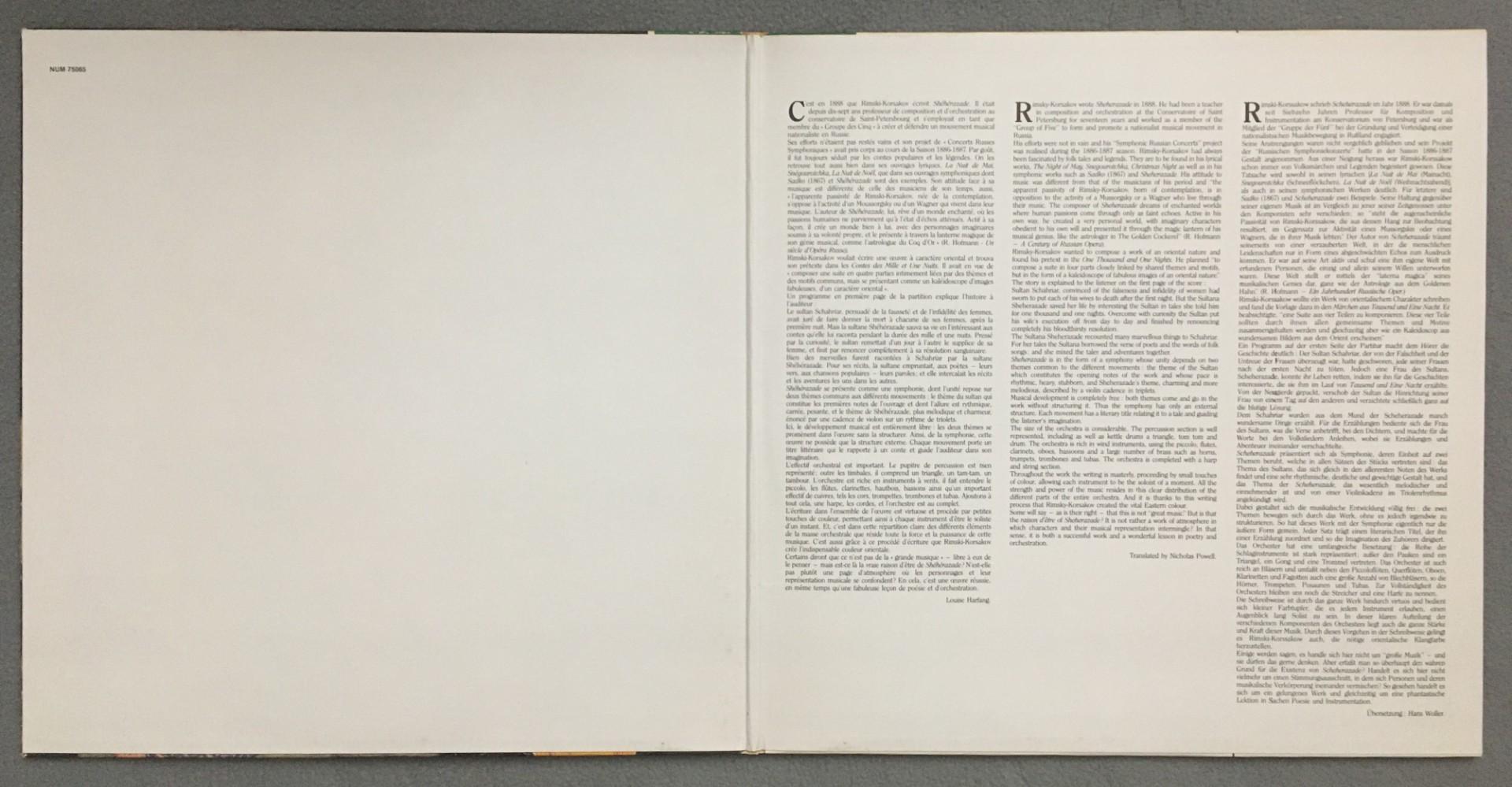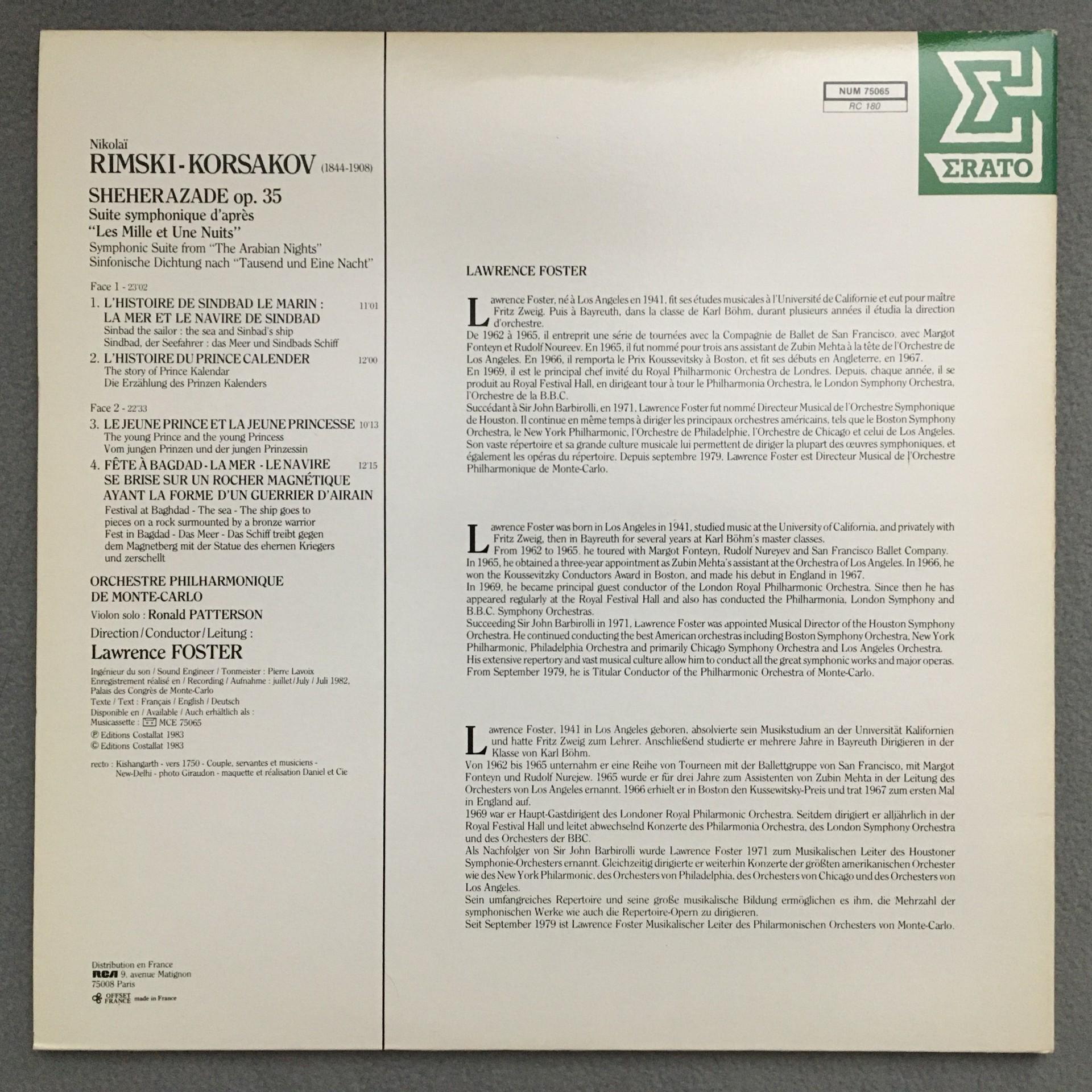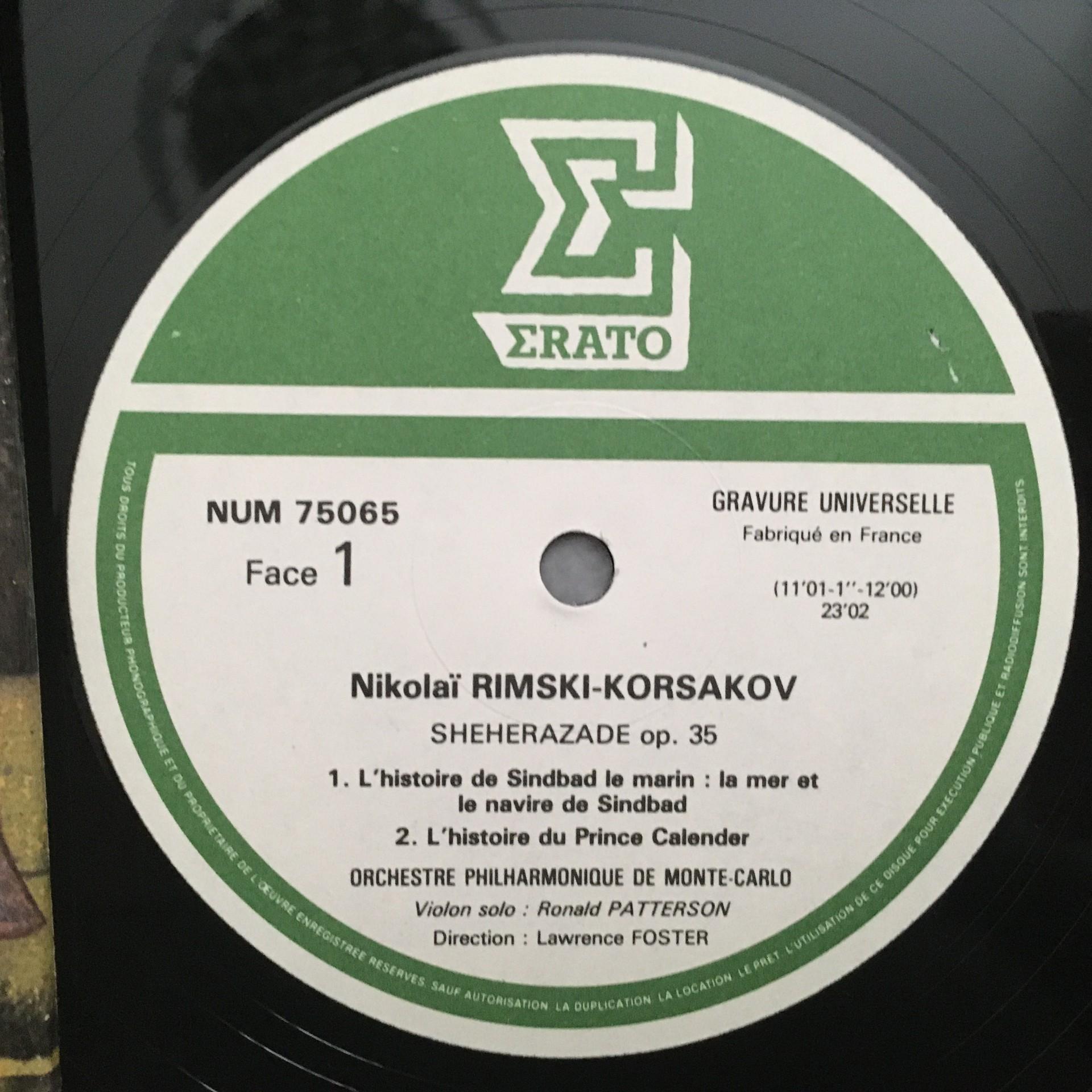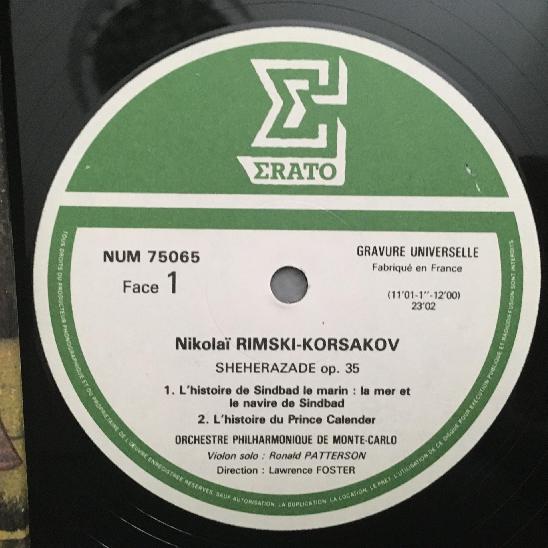 L329 Rimsky-Korsakov Sheherazade Patterson Foster Erato NUM 75065 Digital Stereo