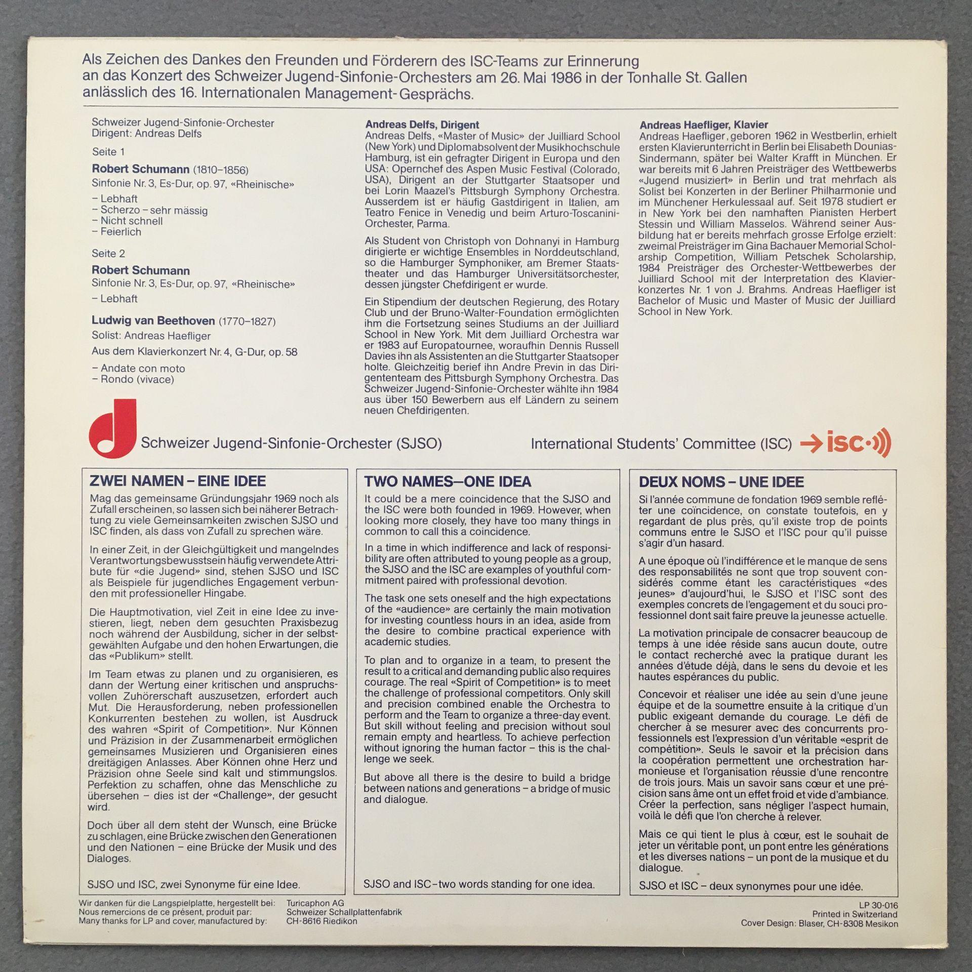 L333 Schumann Symphony Beethoven Concerto Haefliger ISC LP 30-016 Stereo