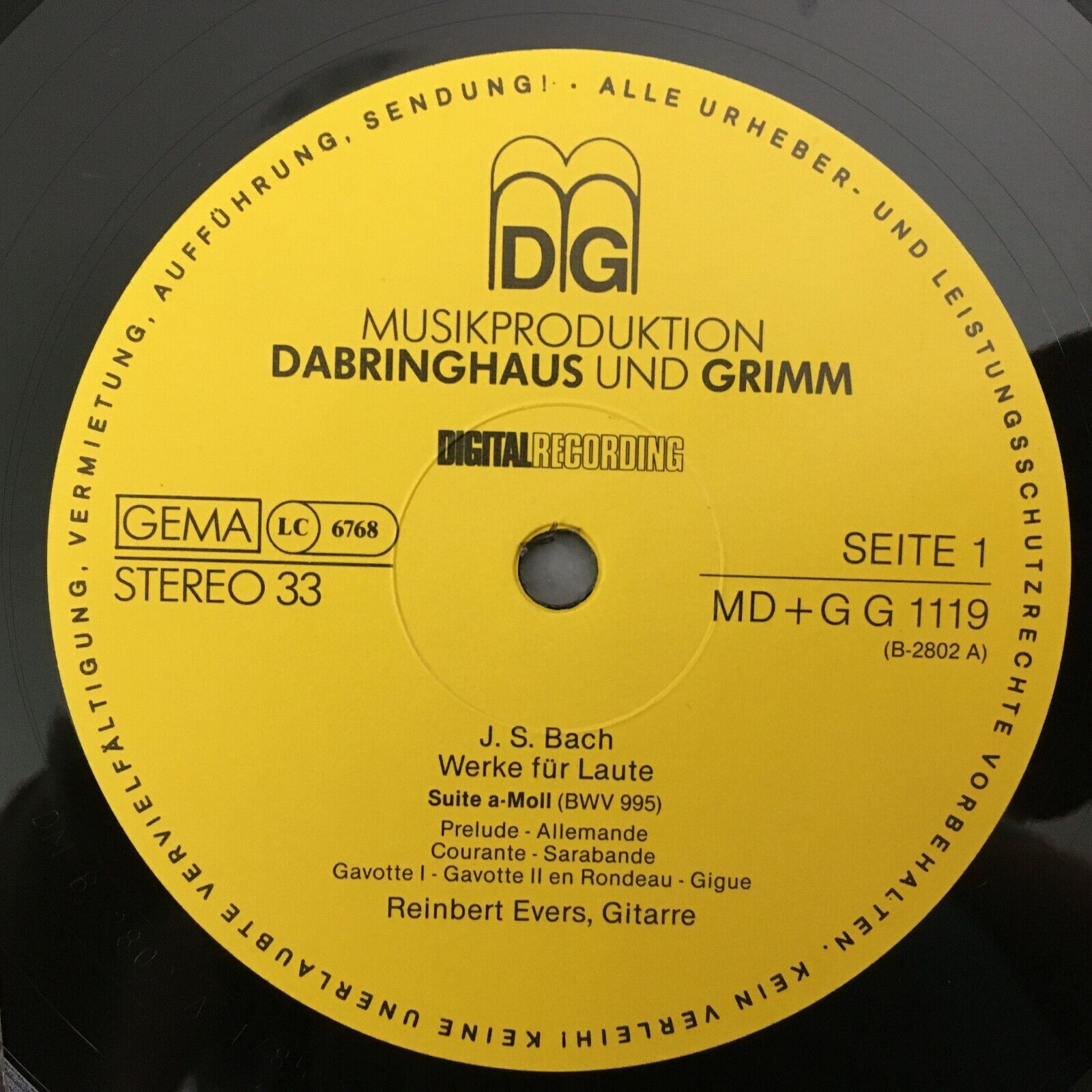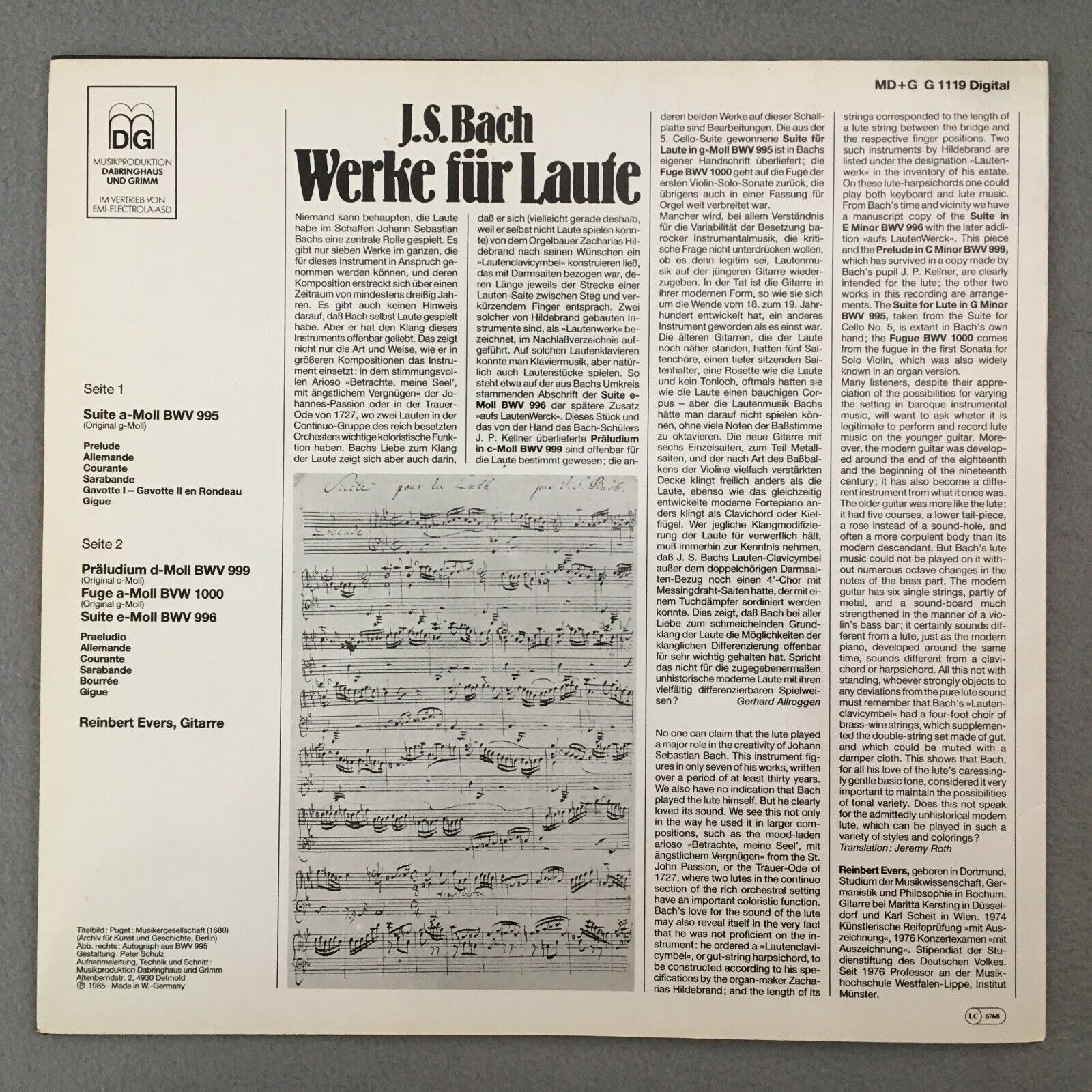 Y556 Bach Works for Lute Suites Fugue Evers DG MD + G G 11 19 Digital Stereo