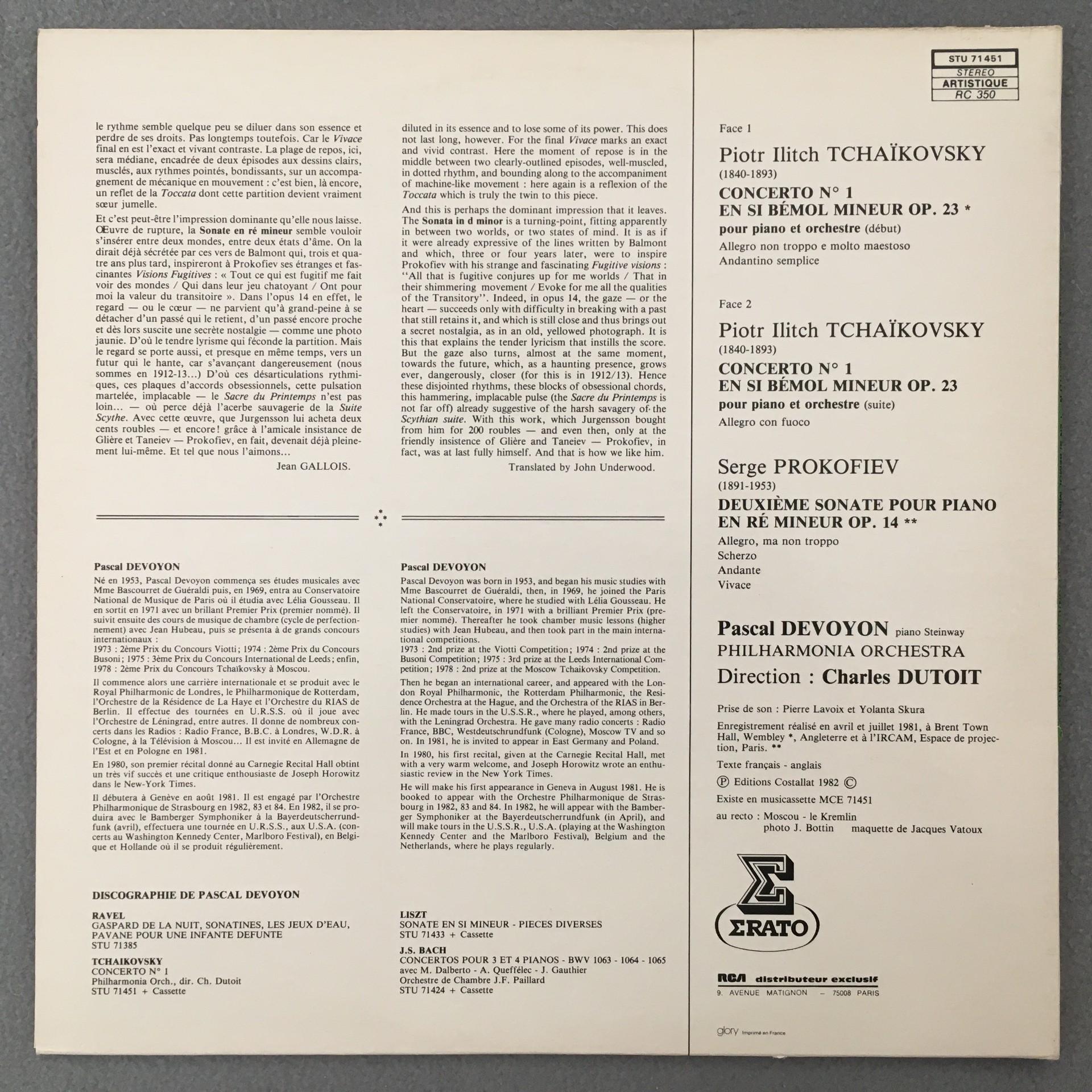 L336 Tchaikovsky Piano Concerto Prokofiev Devoyon Dutoit Erato STU 71451 Stereo