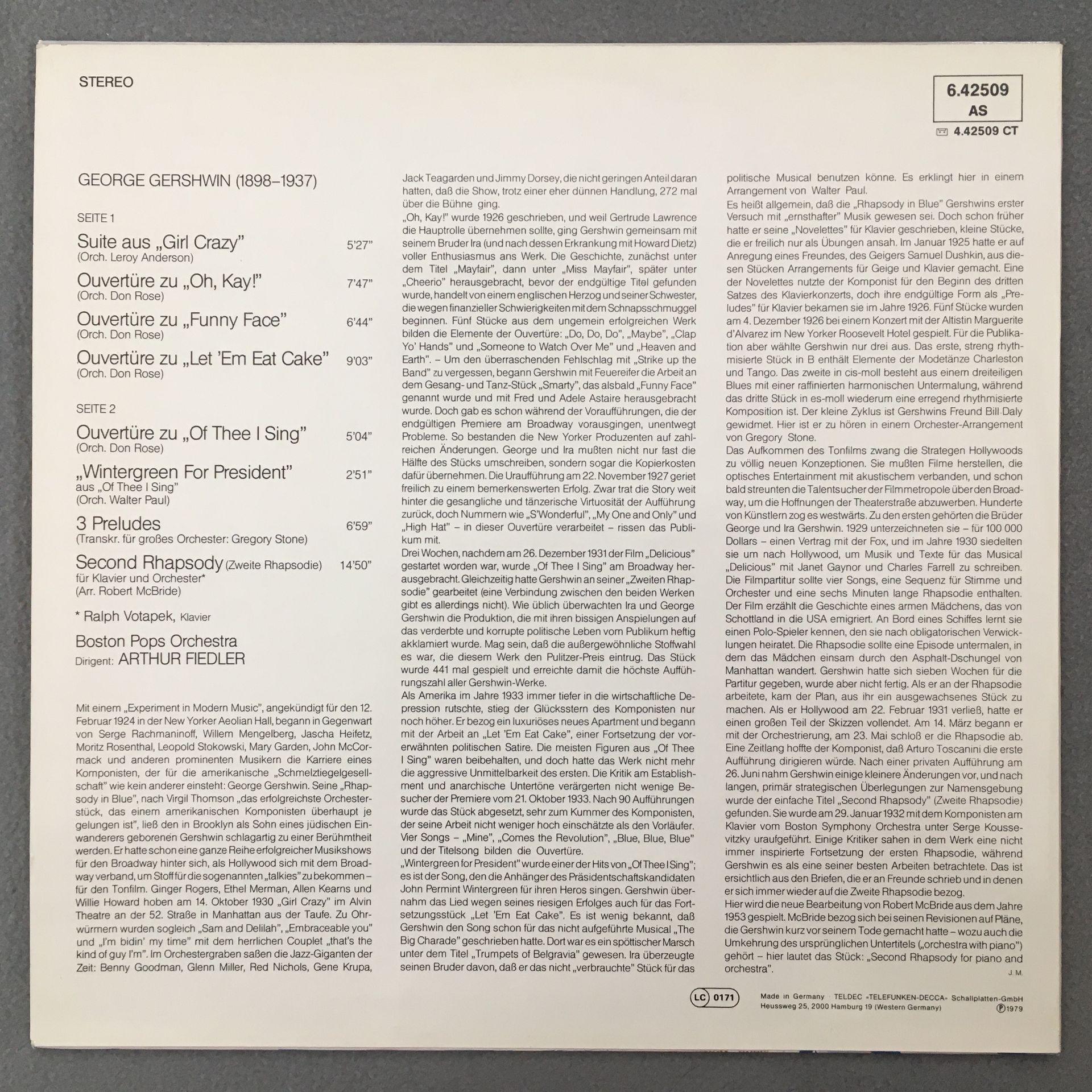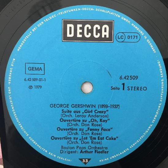 L345 Gershwin Suite Overtures Rhapsody Fiedler DECCA 6.42509 AS Stereo