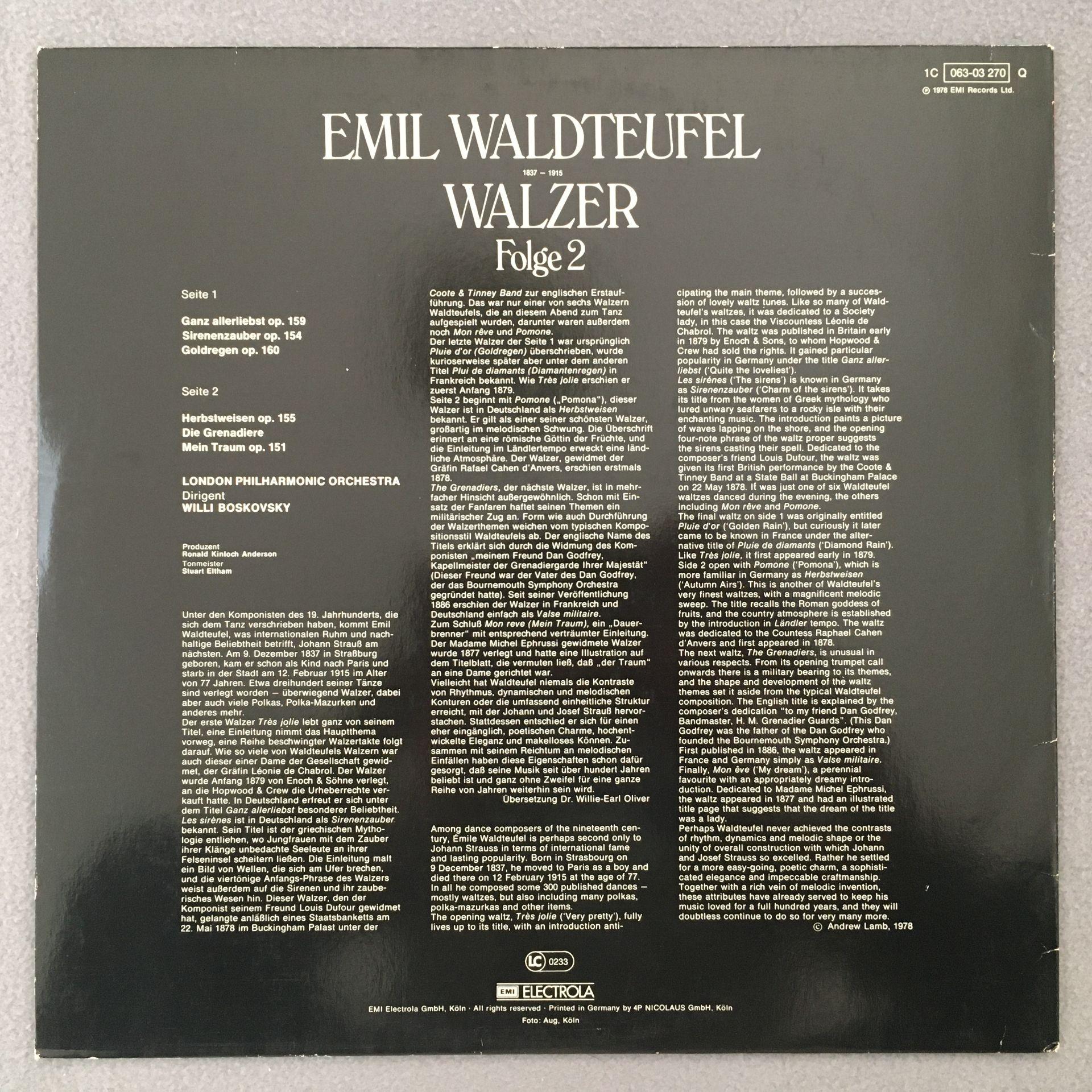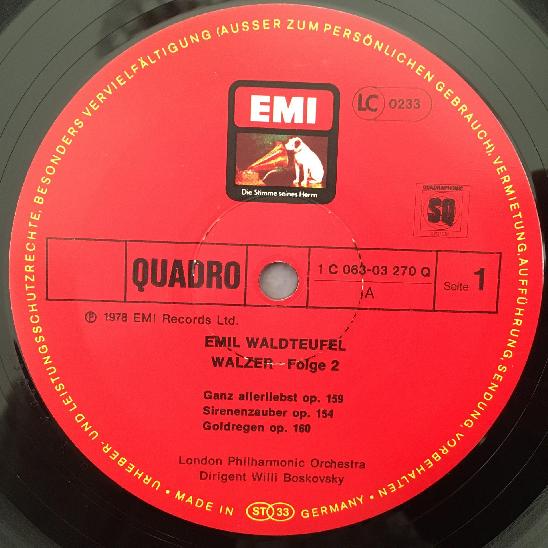 L349 Waldteufel Waltzes Vol.2 Boskovsky EMI 1C 063-03 270 Q Quadro