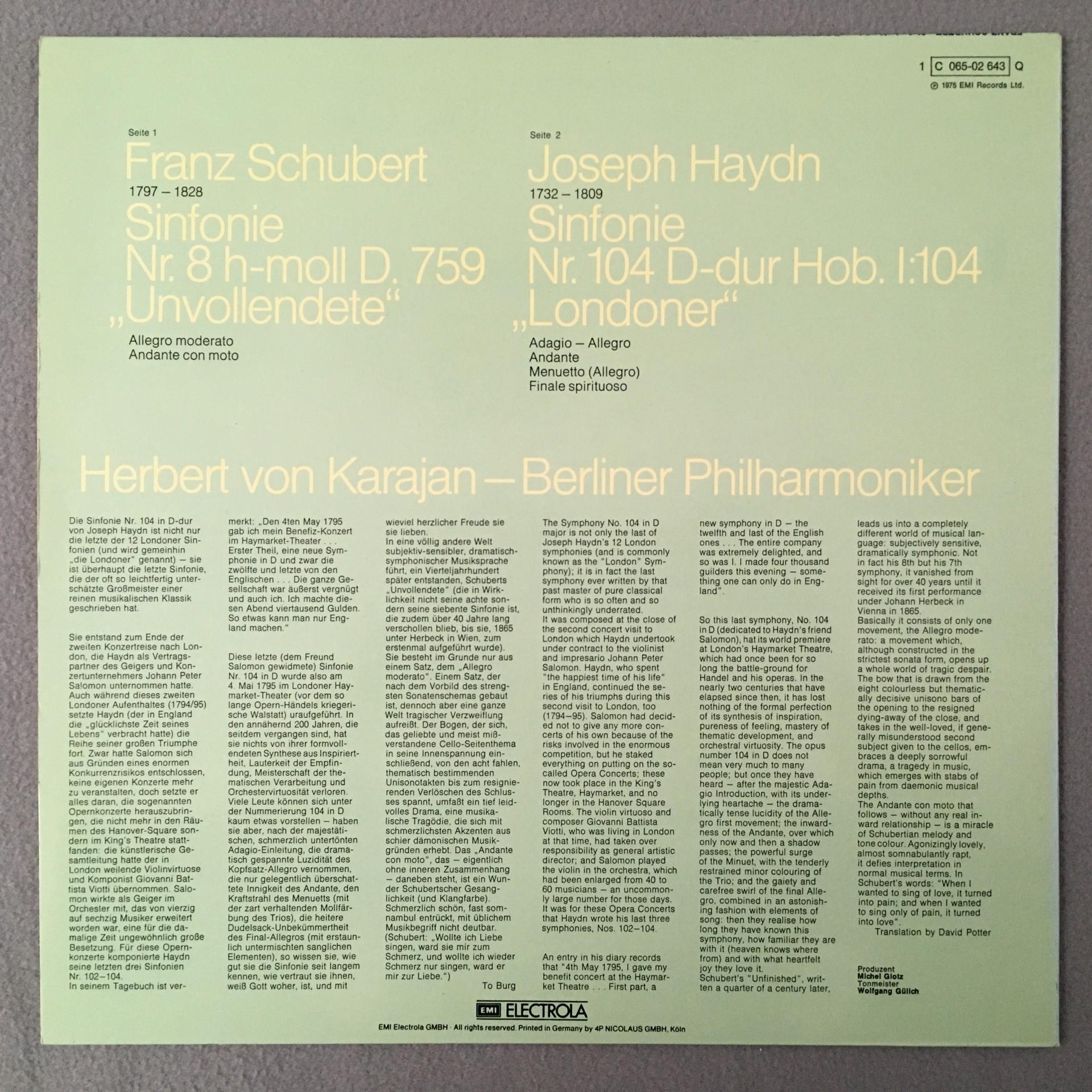L371 Schumann Haydn Symphonies Karajan BPO EMI 1 C 065-02 643 Q Quadro