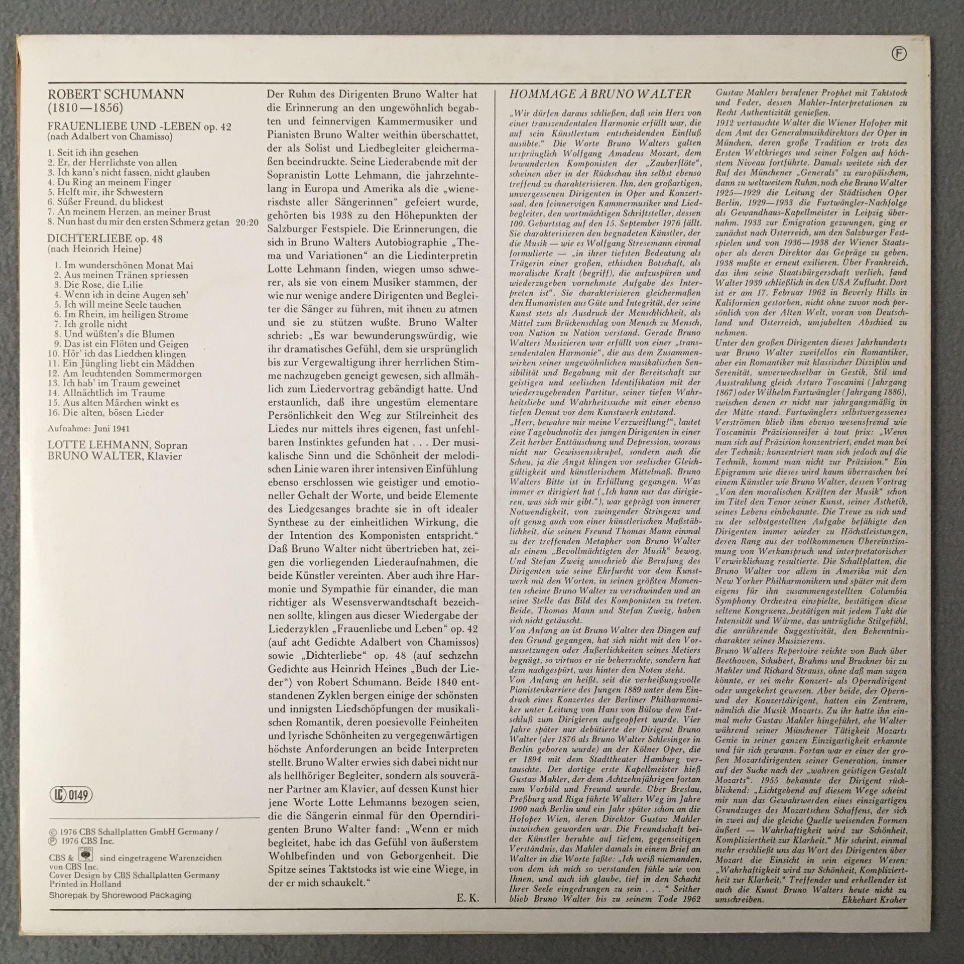 L375 Schumann Frauenliebe Dichterliebe Lehmann Walter CBS 61 501