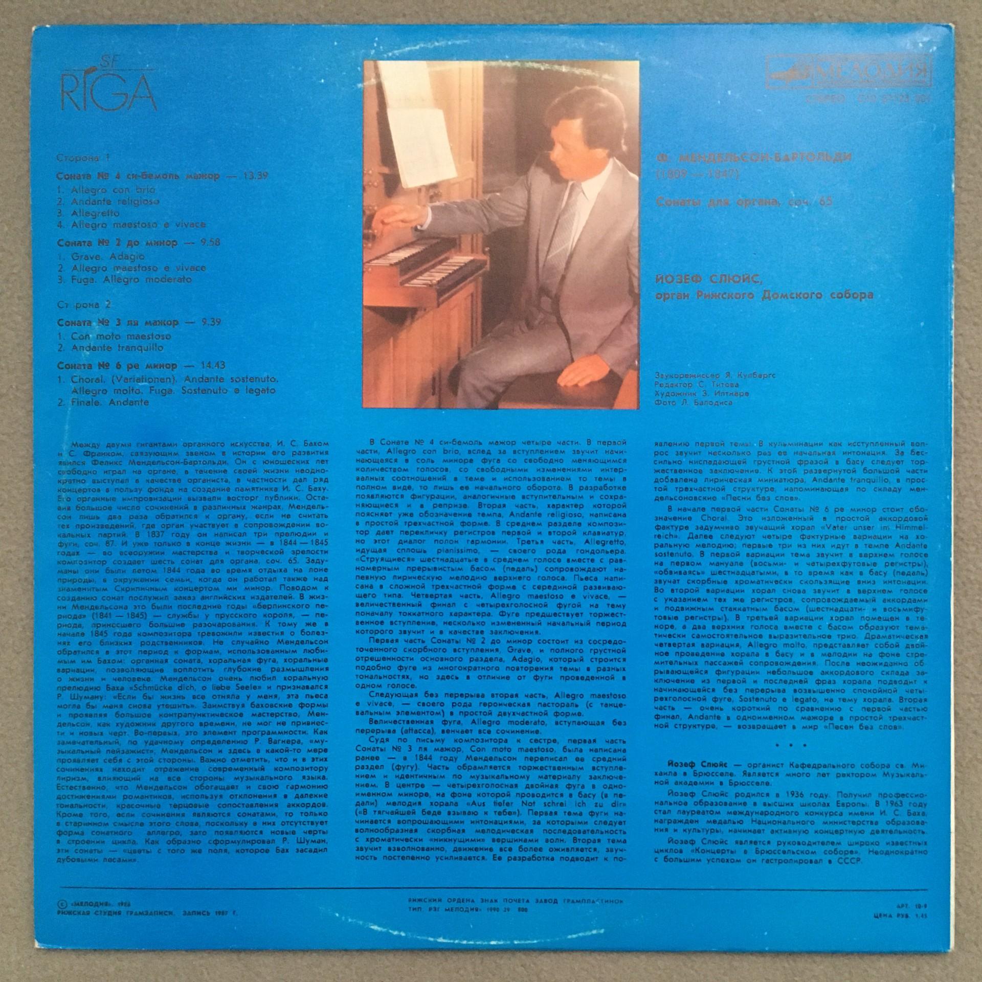 L395 Mendelssohn Organ of the Riga Dom Sluys Melodiya C10 27123 001 Stereo