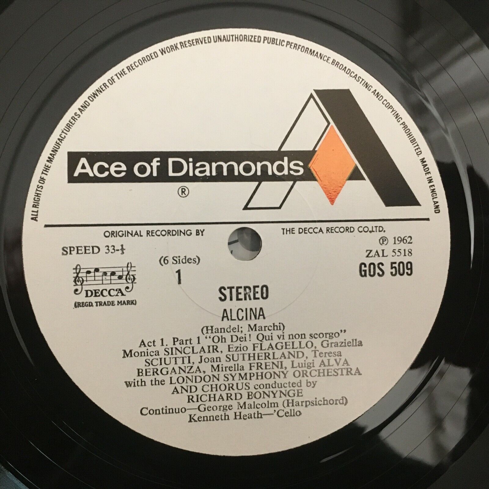 B568 Handel Alcina Sutherland Bonynge 3LP Ace of Diamonds GOS 509-11 Stereo