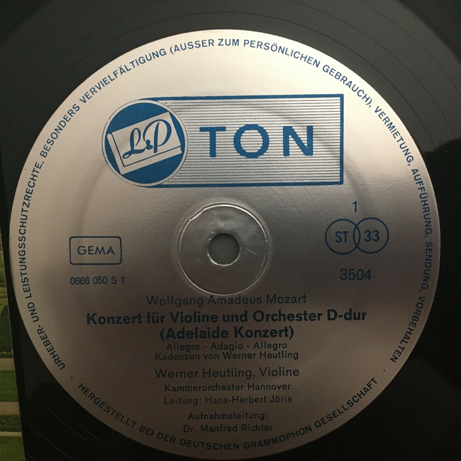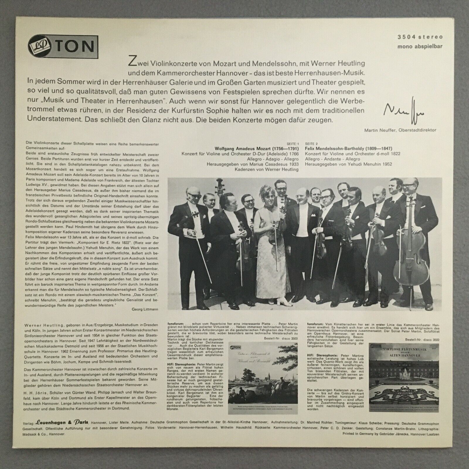 V506 Mozart Mendelssohn Violin Concertos Heutling Jöris L&P Ton 3504 Stereo