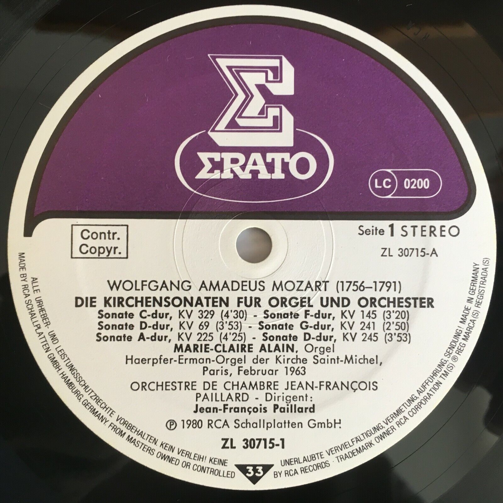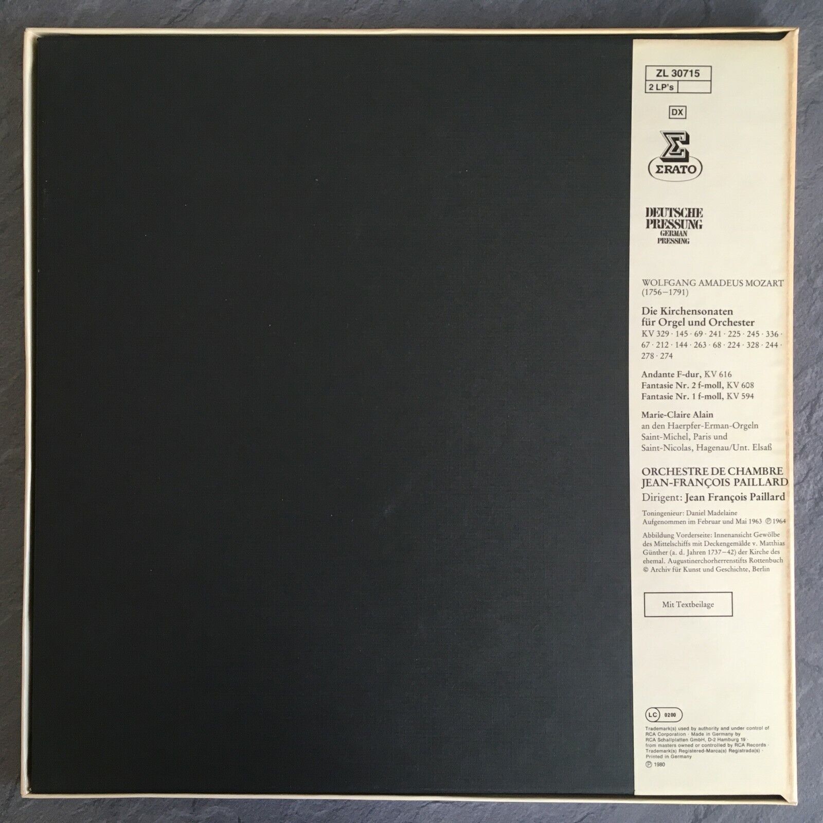 B419 Mozart Church Sonatas for Organ Alain Paillard 2LP Erato ZL 307 15 Stereo