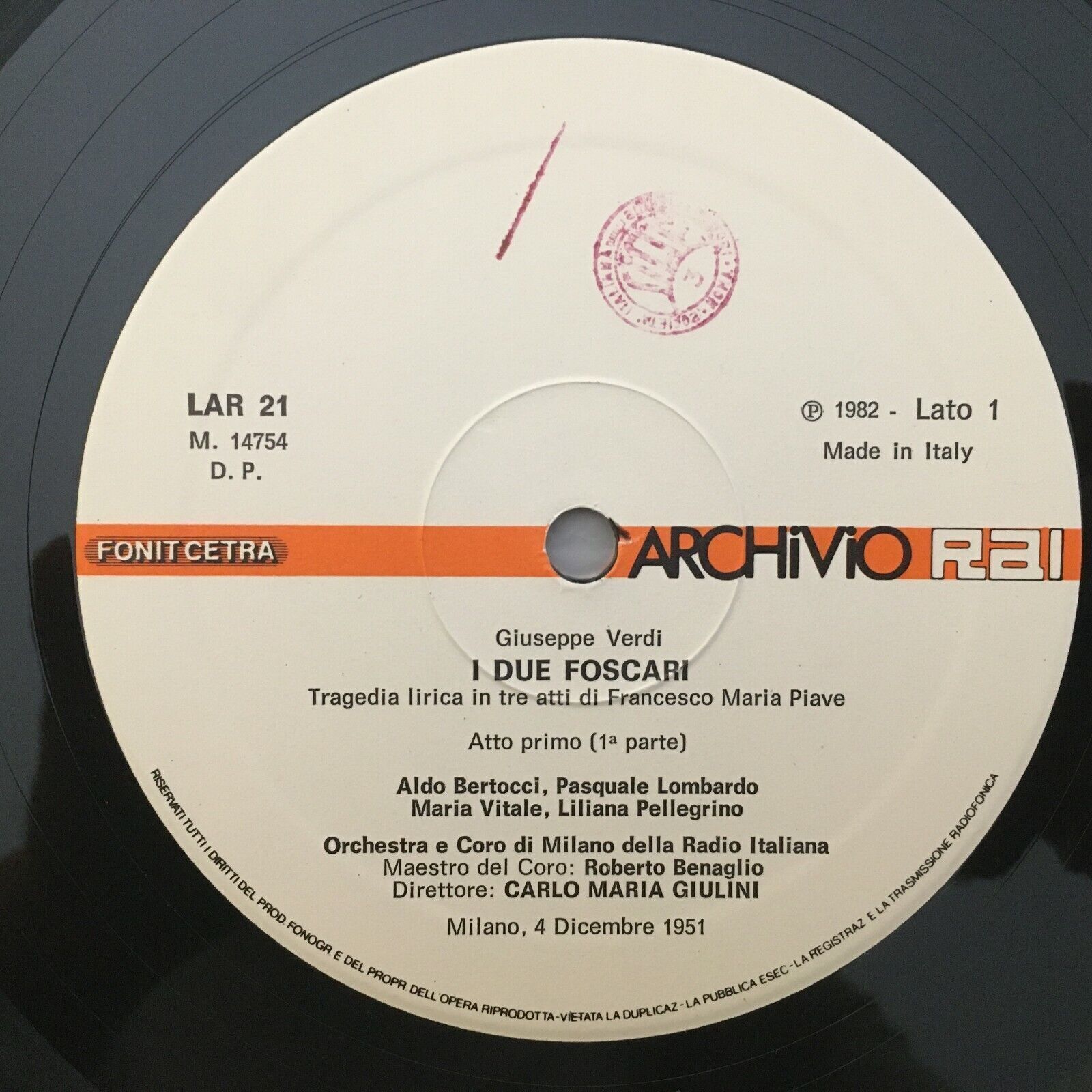 B448 Verdi I Due Foscari Bergonzi Vitale Guelfi Giulini 2LP Fonit Cetra LAR 21