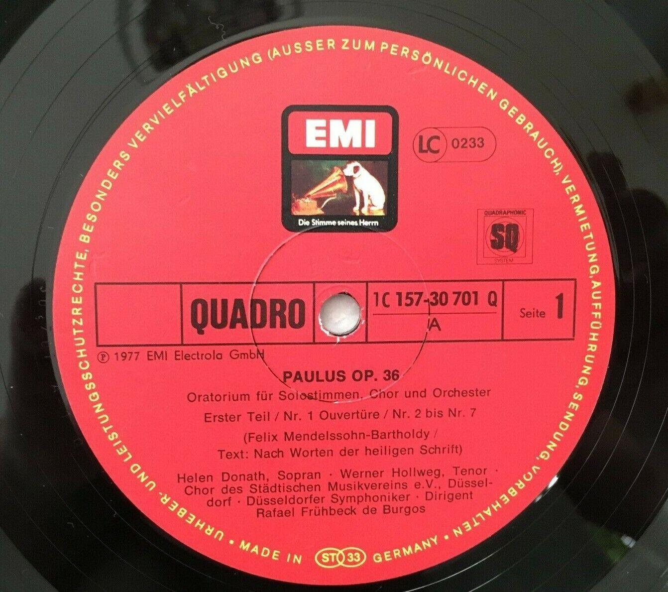 G486 Mendelssohn Paulus Fischer-Dieskau De Burgos 3LP EMI 1C 157-30 701/03 Quadr