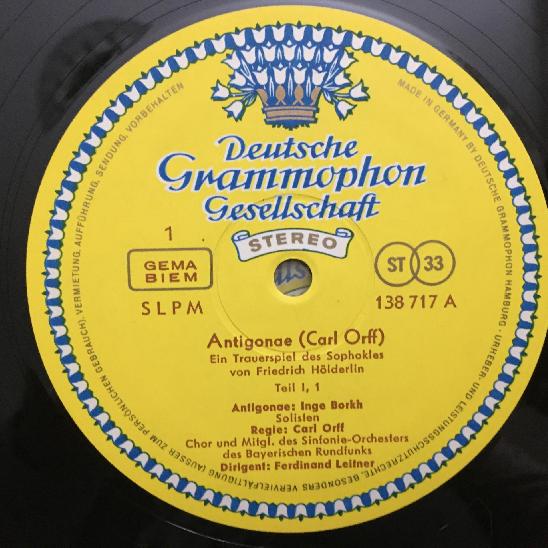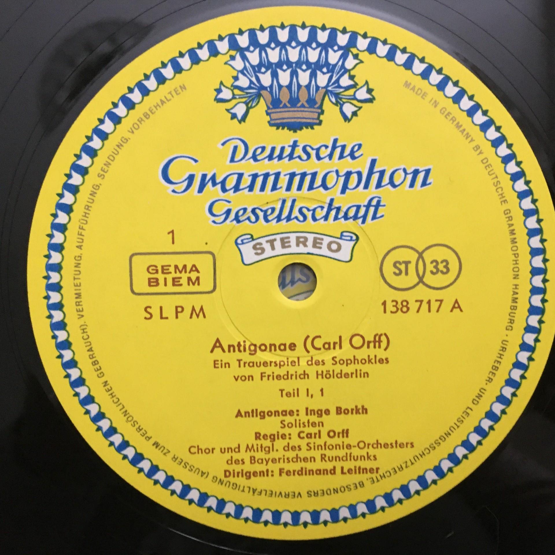 C974 Orff Antigonae Borkh Haefliger Leitner 3LP DGG 2709 009 Stereo Tulip