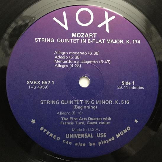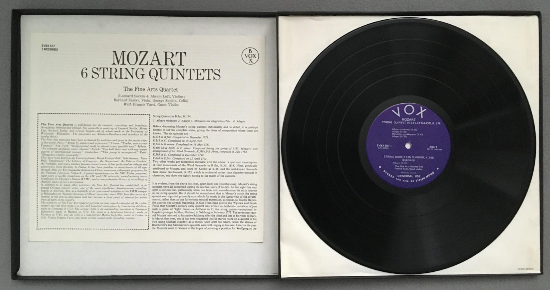 C977 Mozart 6 String Quintets Tursi Fine Arts Quartet 3LP VOX BOX SVBX 557 St