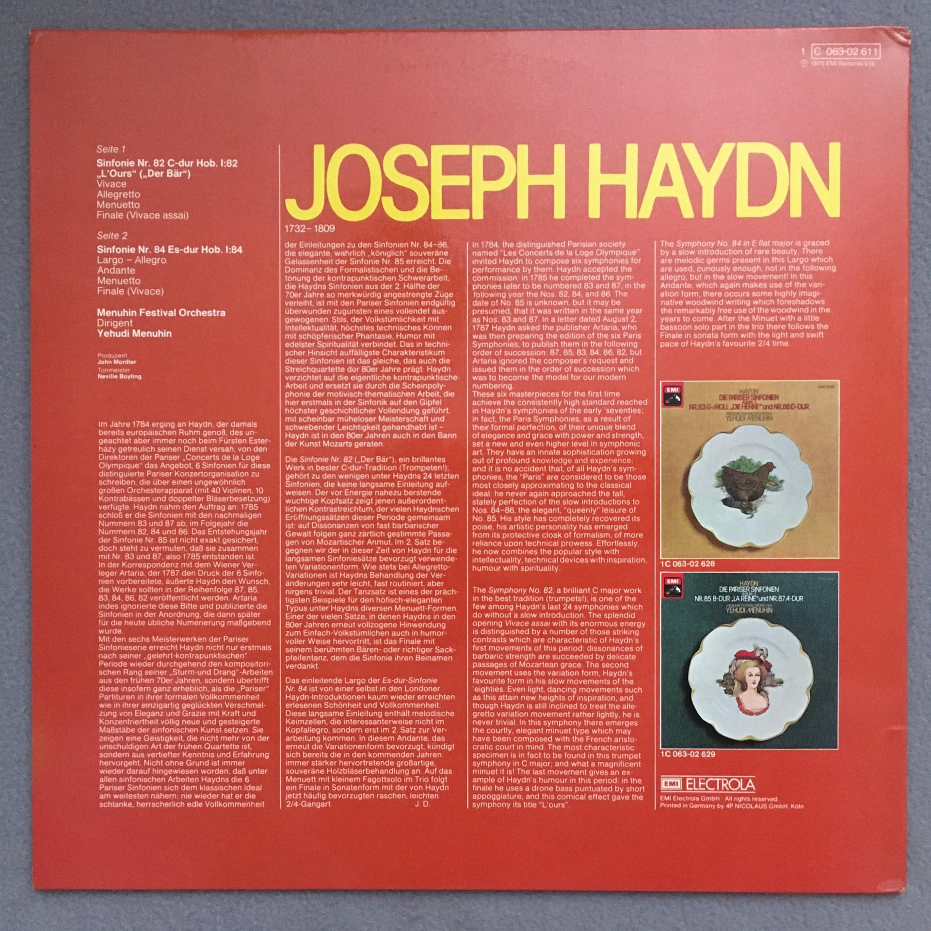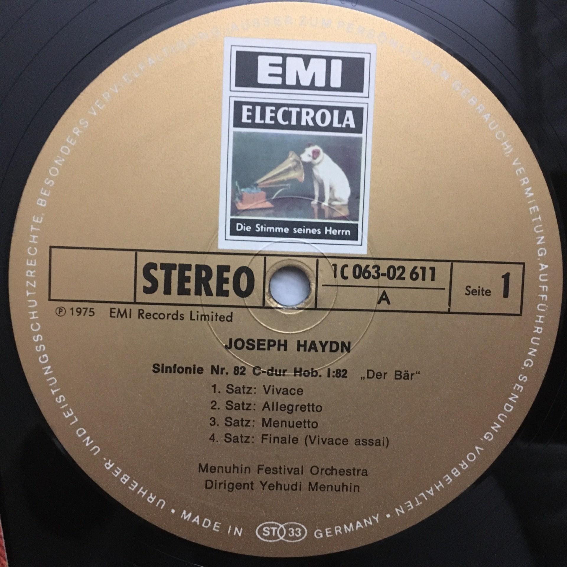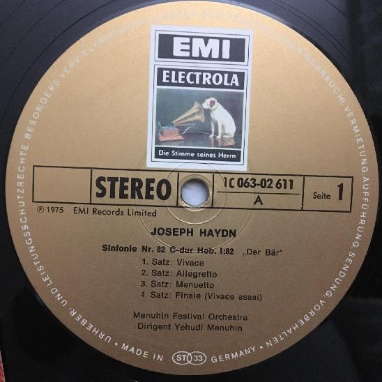 L450 Haydn Symphonies No.82 & No.44 Menuhin EMI 1 C 063-02 611 Stereo