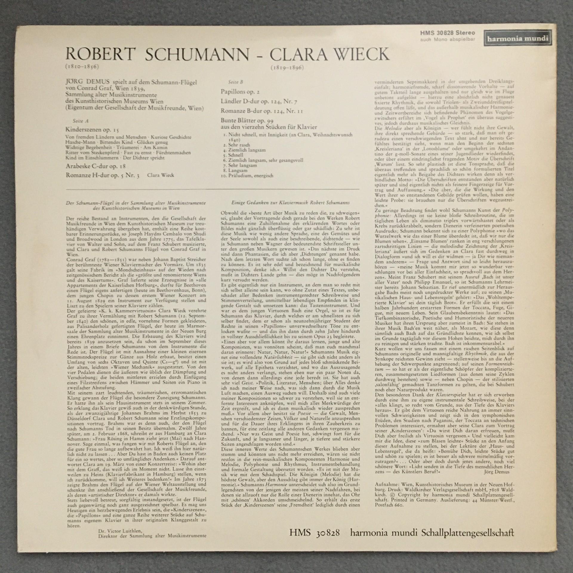L462 Schumann Wieck Arabeske Romance Papillons Demus HM HMS 30 828 Stereo